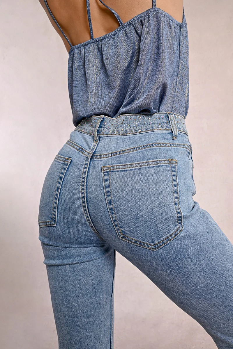 JEANS SKINNY FIT CON BRILLANTINI SU CINTURINO
