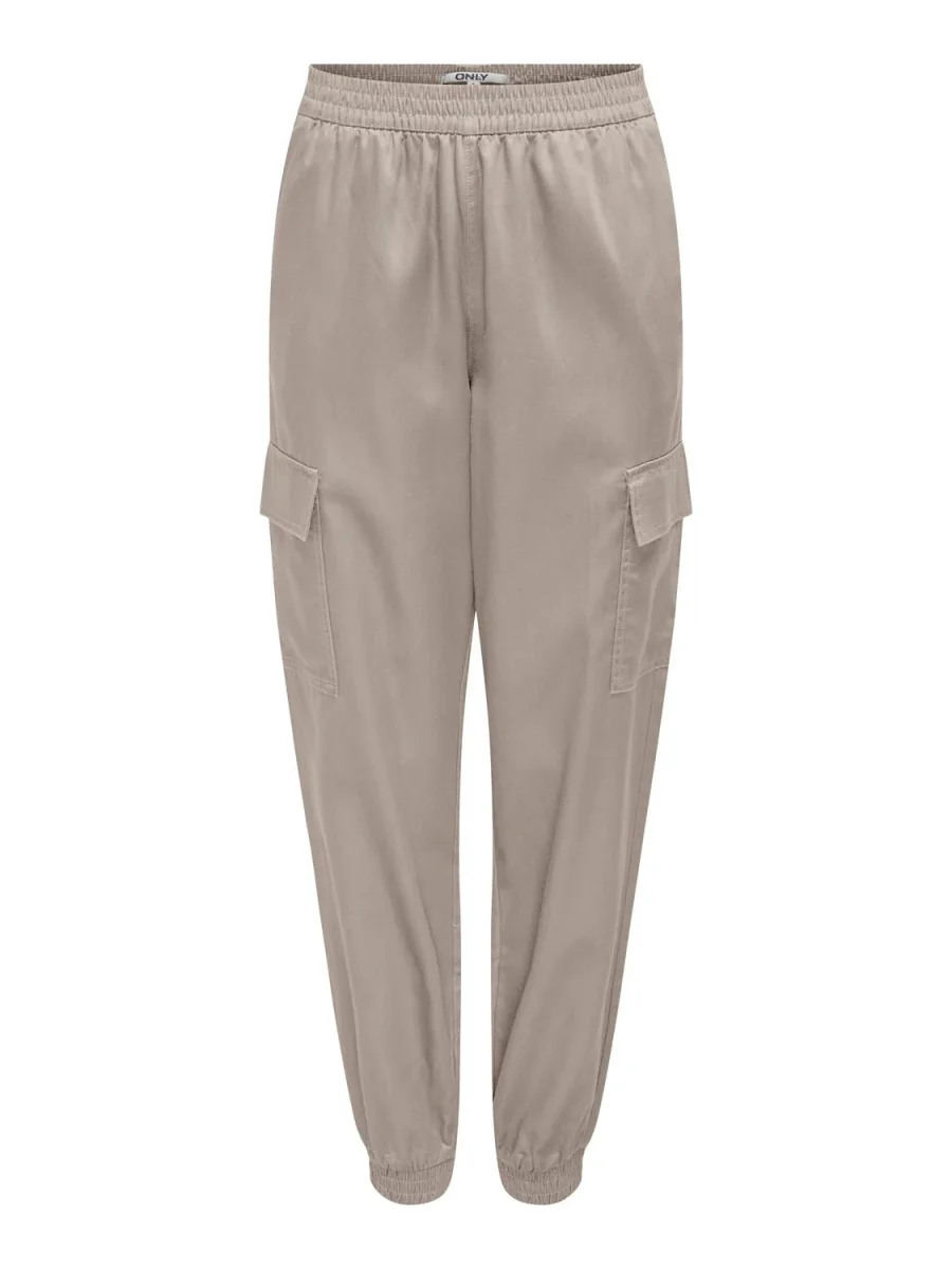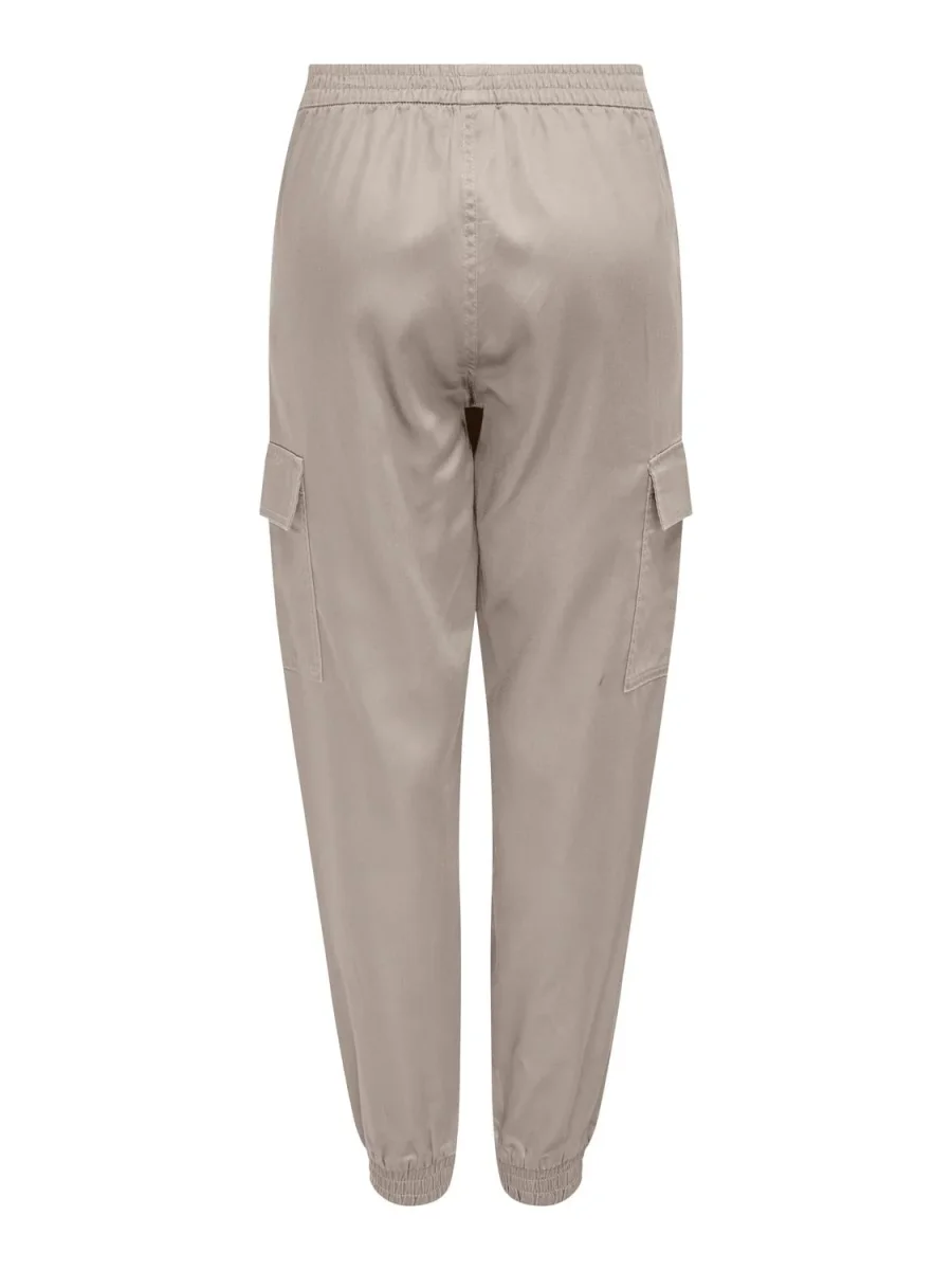 Pantalone sportivo modello cargo in tessuto lucido rasato misto cotone. Vita alta con elastico, tasche a filo e tasconi applicati su entrambe le gambe. Gamba comoda e fondo stretto con elastico. Vestibilità regolare. Compozione tessuto 53% lyocell tencell, 47% cotone.