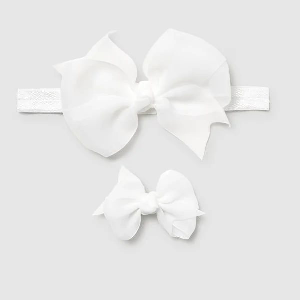 Fascia e fermaglio MAYORAL per bimbe con fiocco rosa . Fascia con elastico e fiocco applicato.