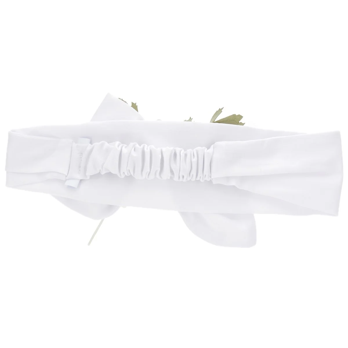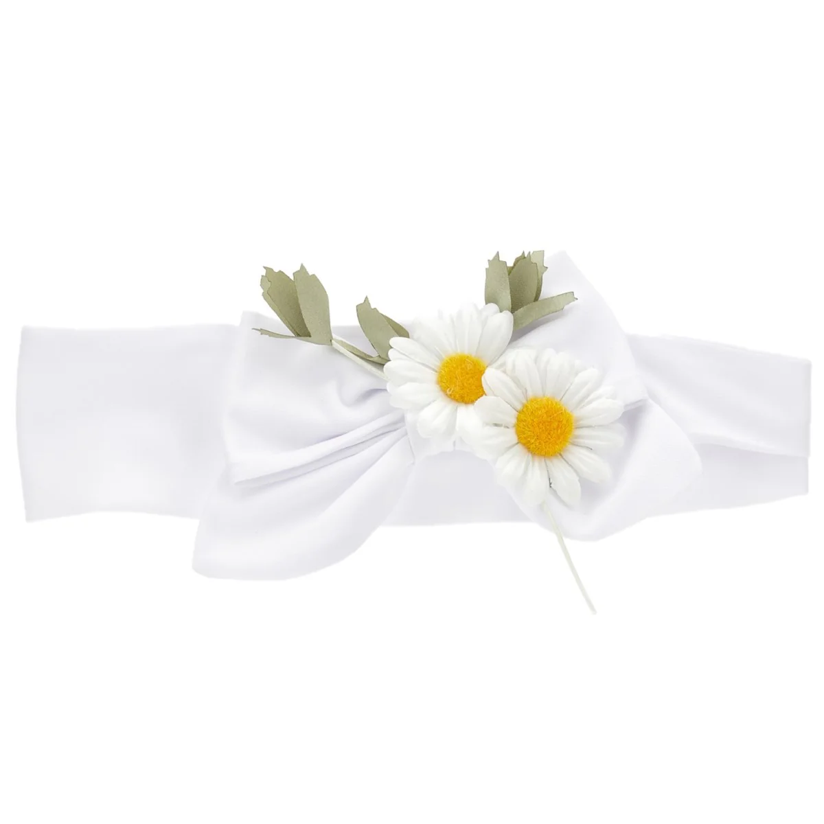 Fascia MONNALISA in cotone con fiocco applicato e fiori in tessuto a contrasto, elastico sul retro.