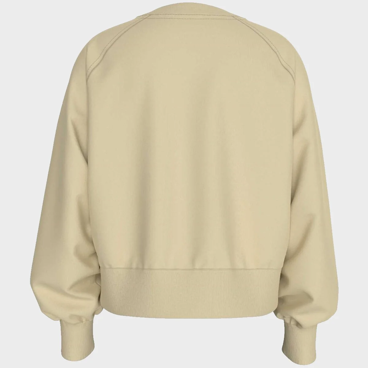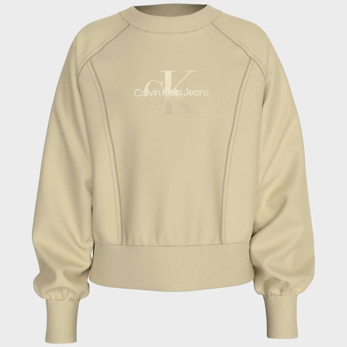Felpa CALVIN KLEIN linea bambina garzata in cotone , modello corto a taglio squadrato con cuciture ,inserti elastici a costine , logo sfumato sul davanti.