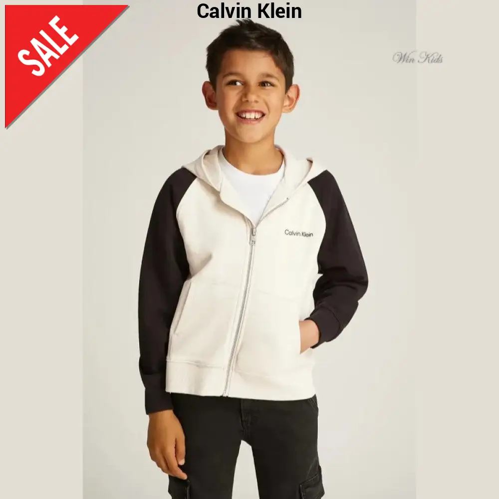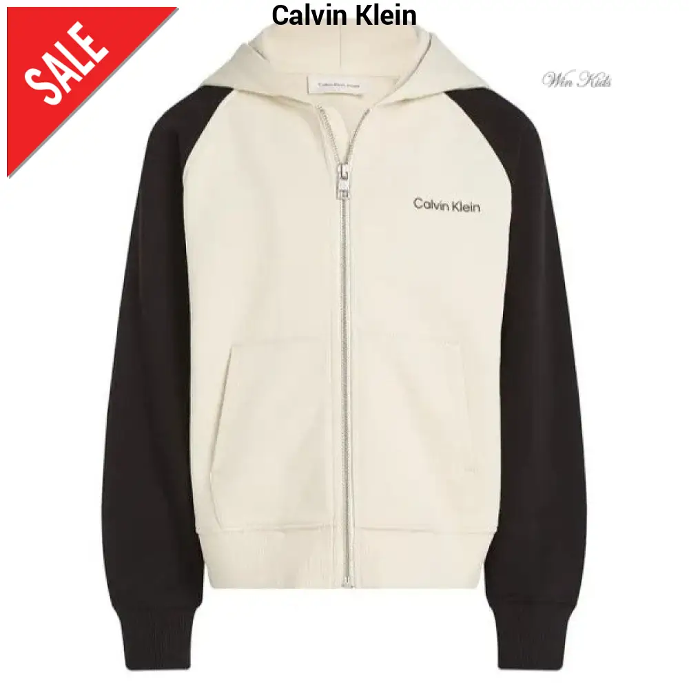 Felpa CALVIN KLEIN in cotone con cappuccio , chiusura con zip e logo .