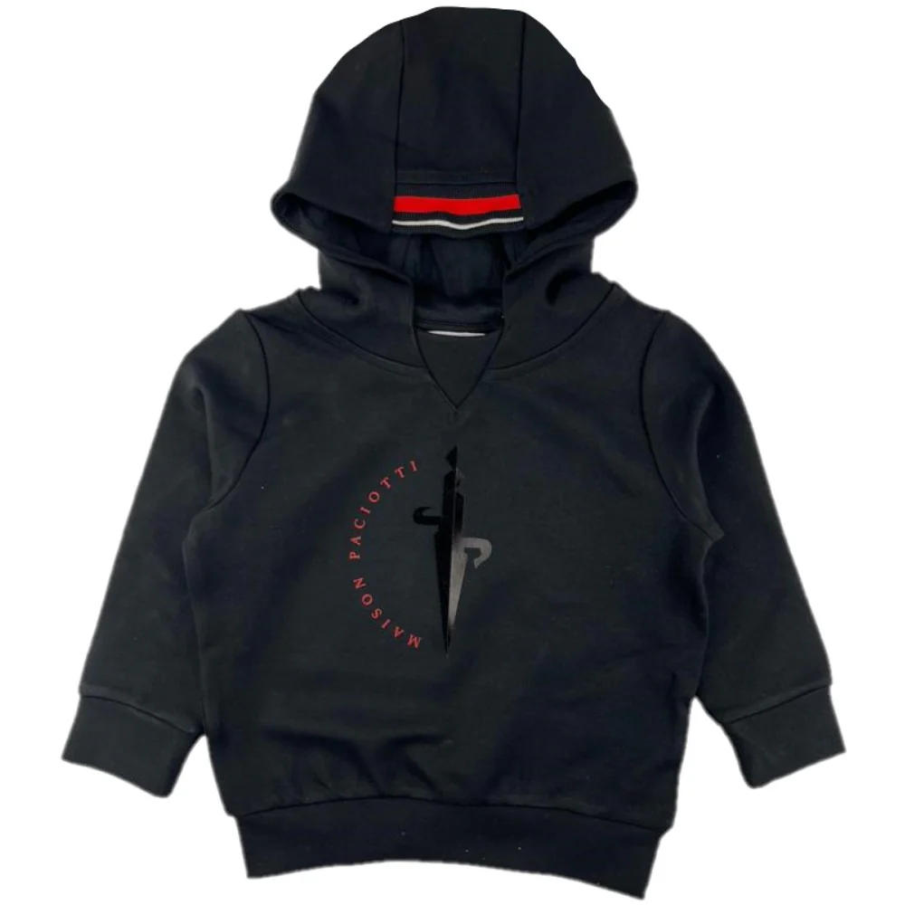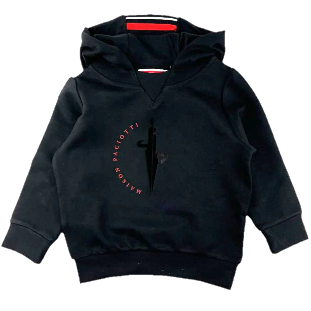 Felpa CESARE PACIOTTI modello manicalunga con cappuccio logo stampato alcentro vita e polsini elastici.