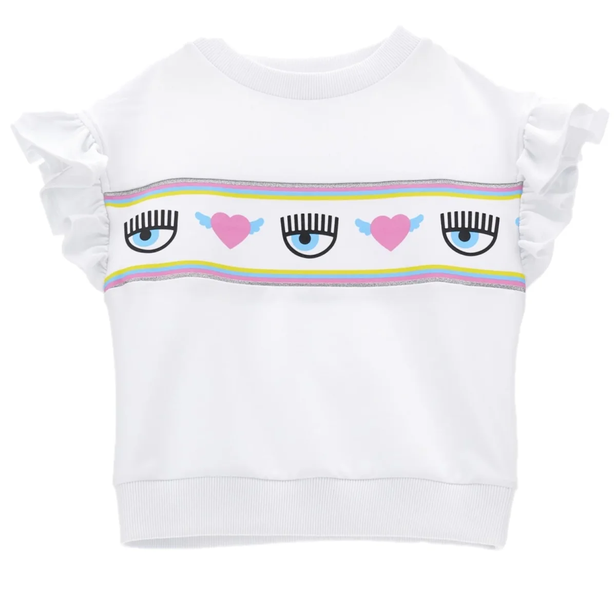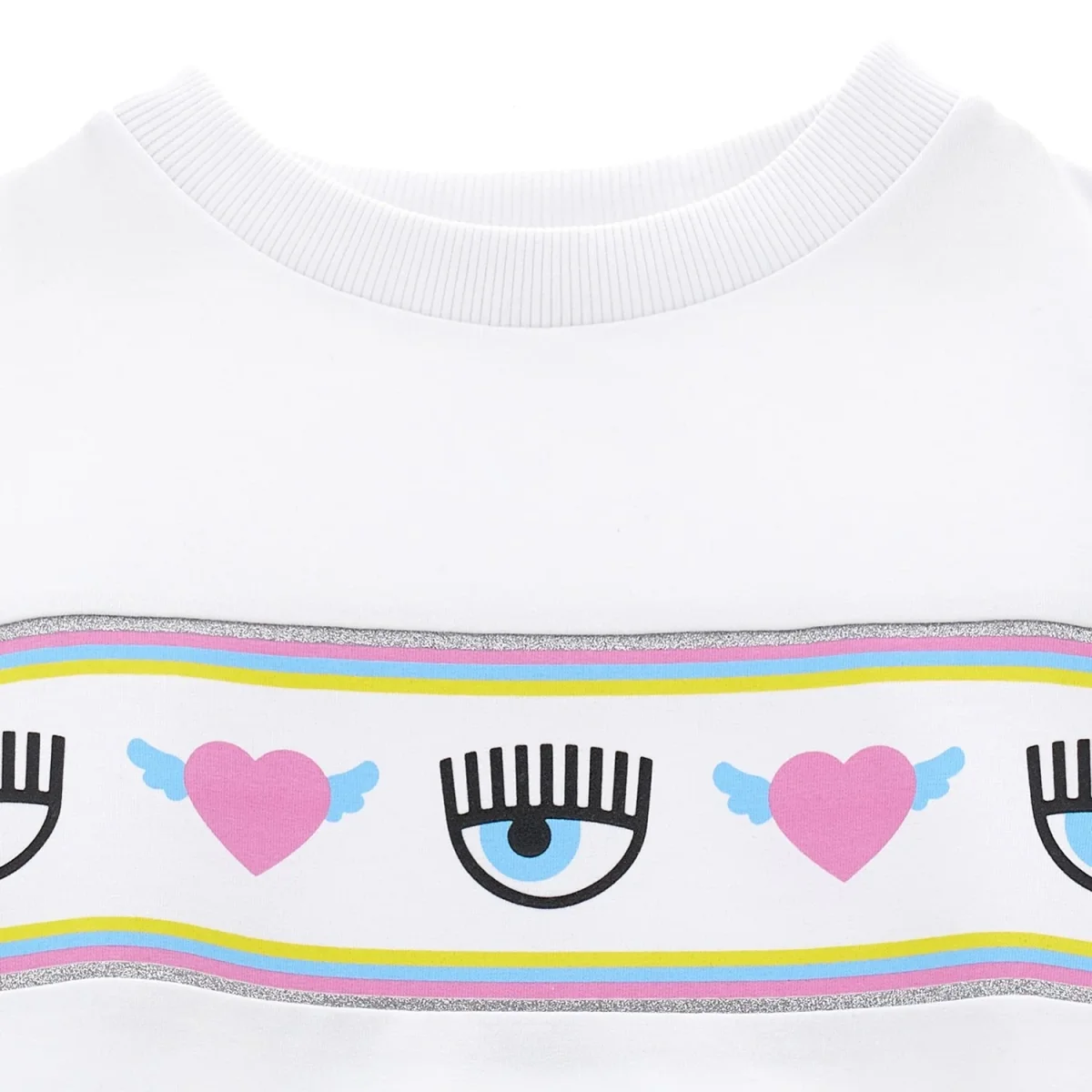 Felpa CHIARA FERRAGNI in cotone garzato , maxi logo a contrasto, banda glitterata.