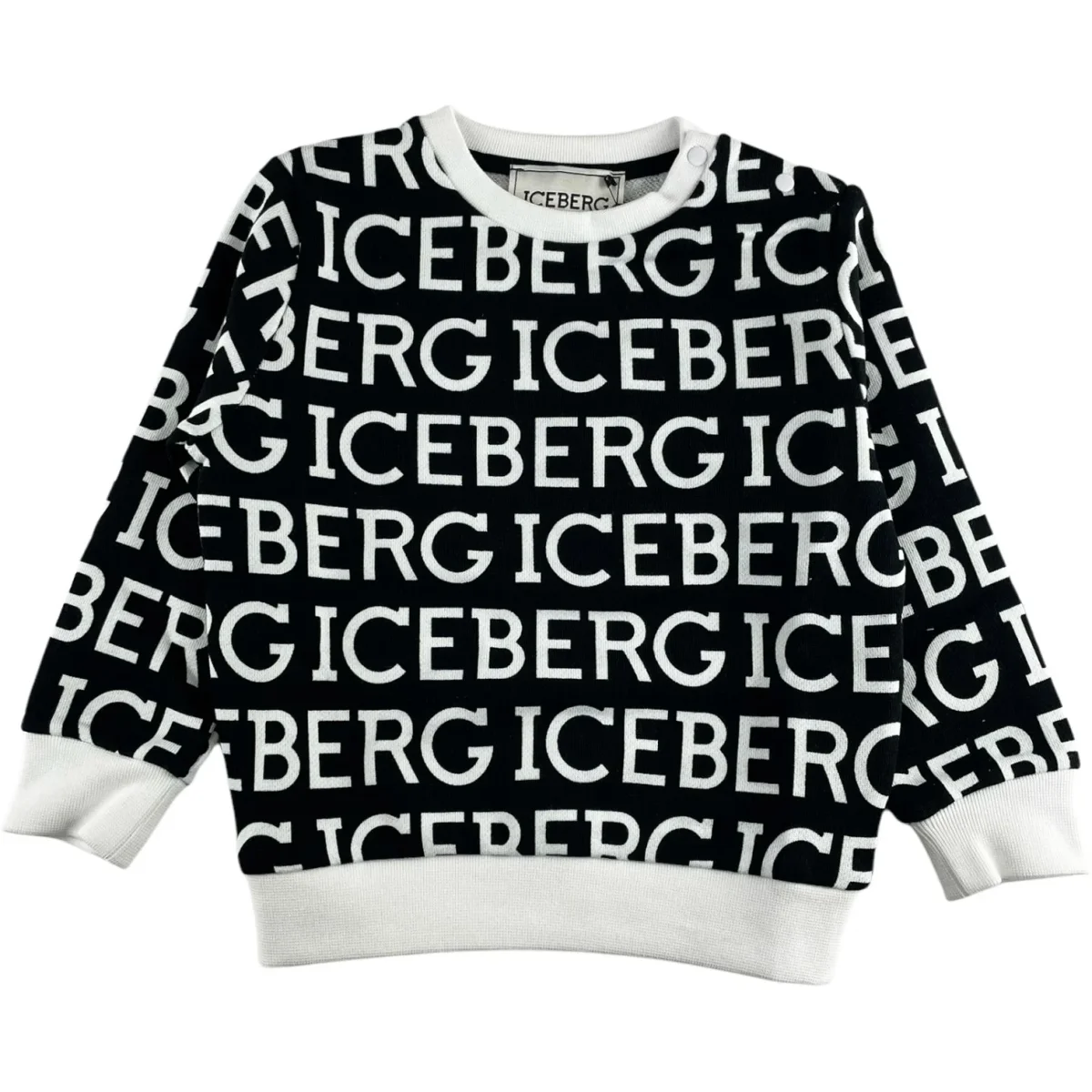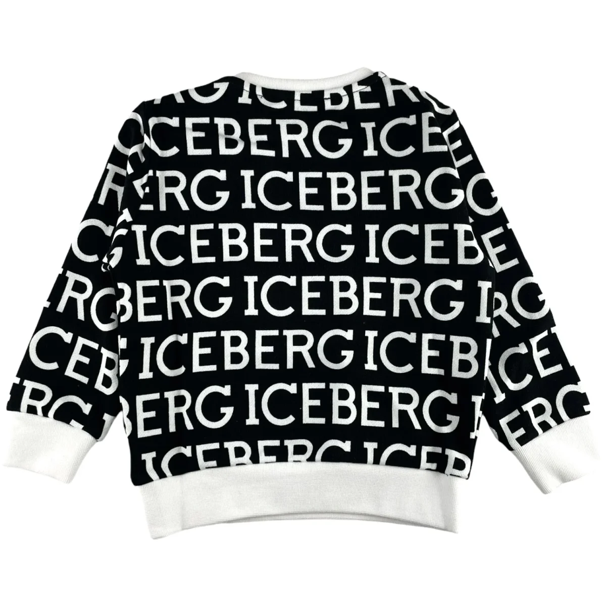 Felpa ICEBERG bambino in cotone garzato, stampa maxi logo a contrasto.