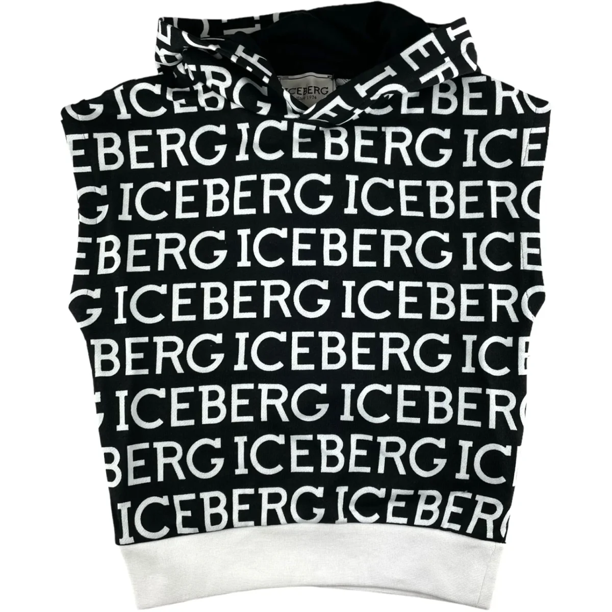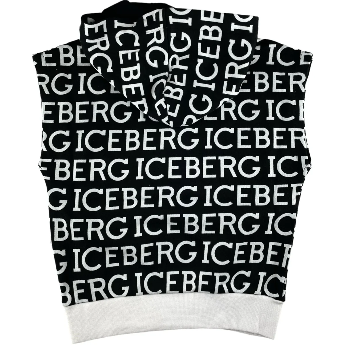 Felpa ICEBERG modello smanicato con cappuccio in cotone garzato a fantasia maxi logo.