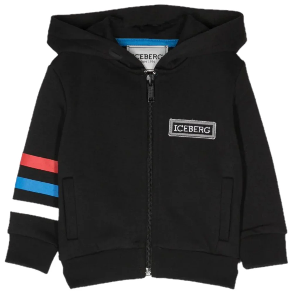 Felpa ICEBERG con interno felpato modello con cappuccio stampa sul retro Silvestro e logo a rilievo chiusura con zip con cursore logato e tasche laterali.