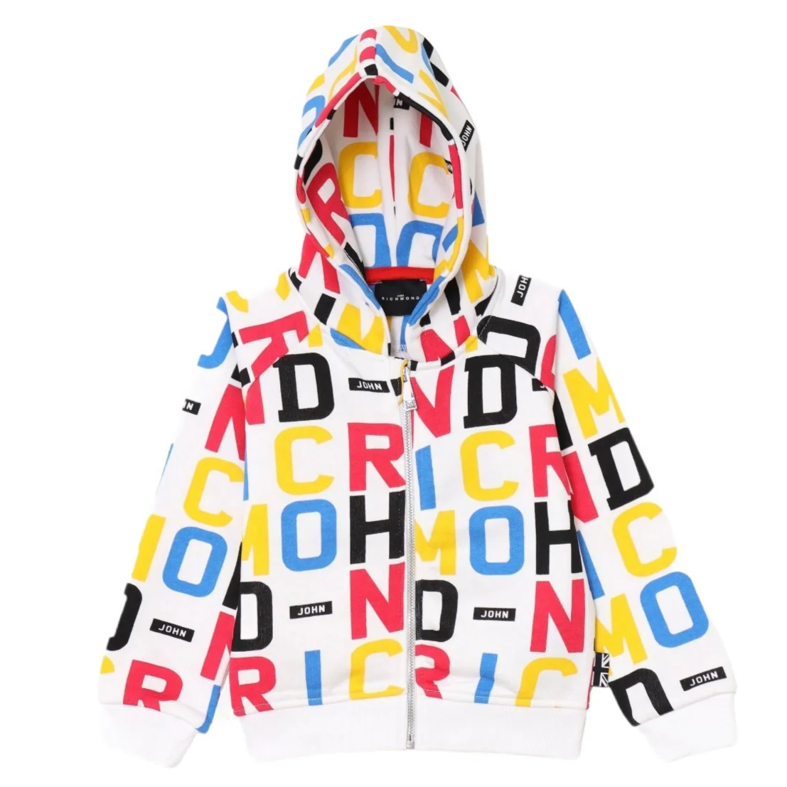 Felpa JOHN RICHMOND fantasia logo all over con interno garzato ,cappuccio e chiusura zip.