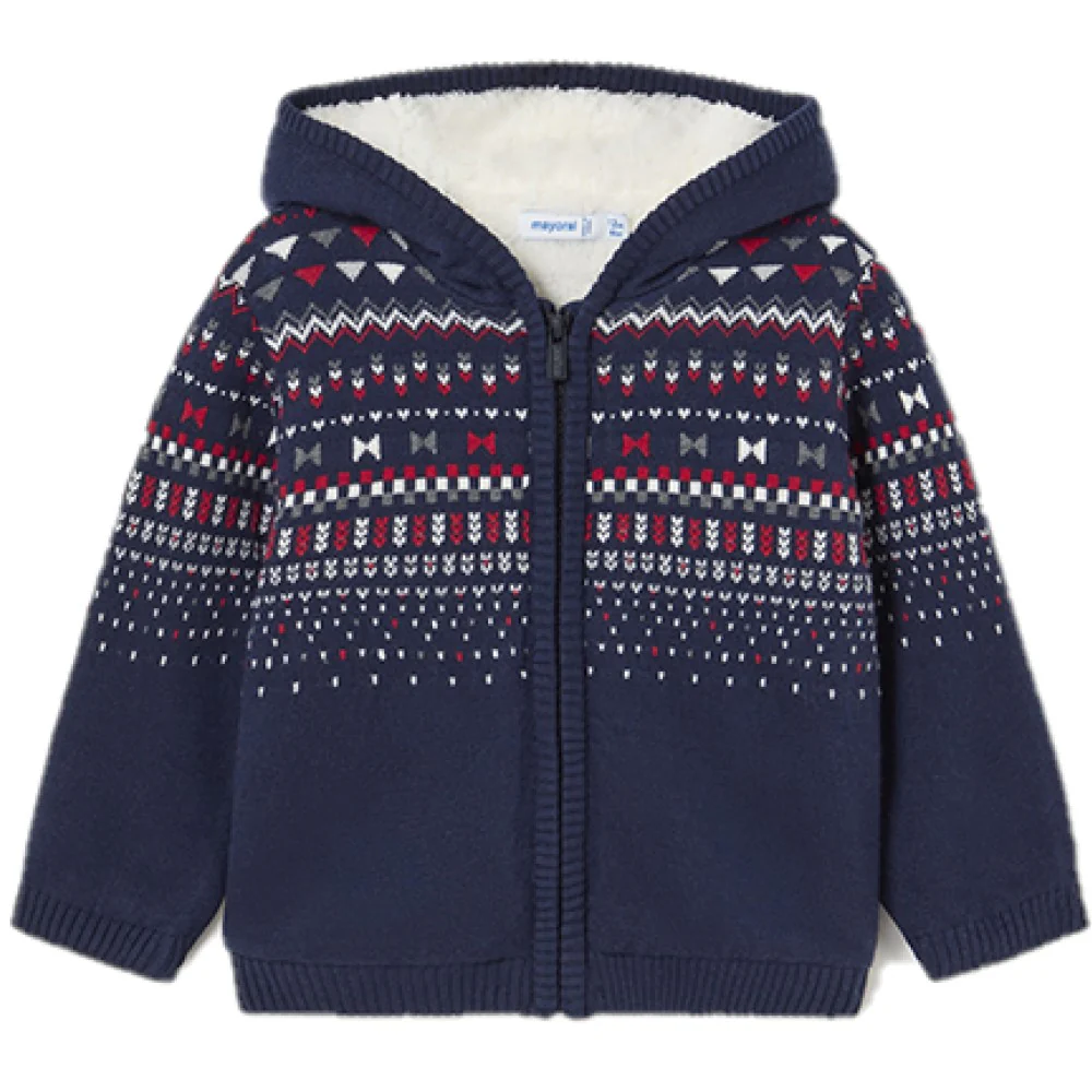 Felpa MAYORAL in cotone a fantasia con fodera in ecopelliccia chiusura zip e cappuccio.