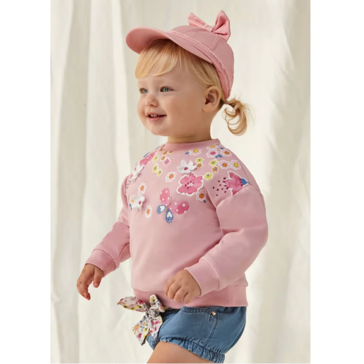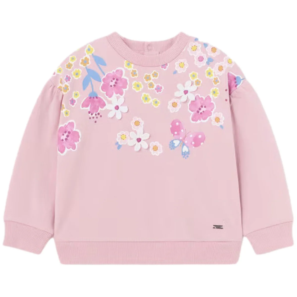 Felpa MAYORAL in cotone con interno garzato con stampa e patch applicati in colori a contrasto, logo in metallo applicato, chiusura con clips sul retro.