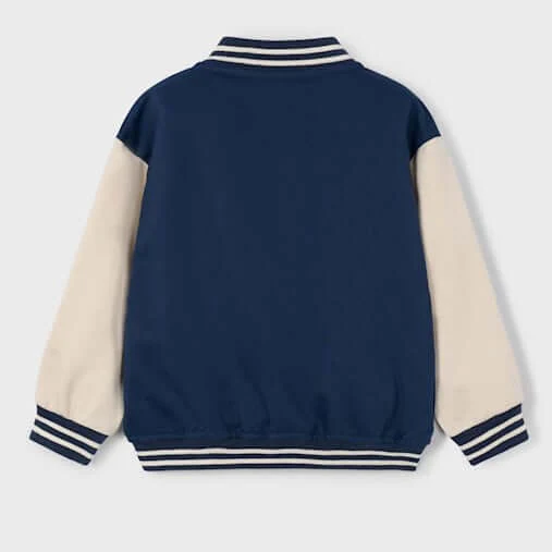 Felpa MAYORAL modello bomber college , interno felpato , chiusura con clips e patch.