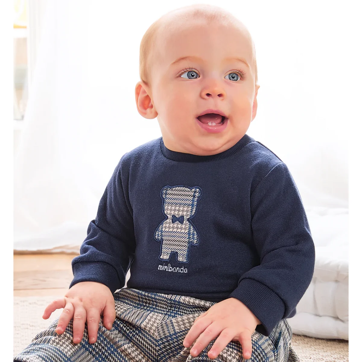 Felpa MINIBANDA con interno felpato e orsetto a contrasto.