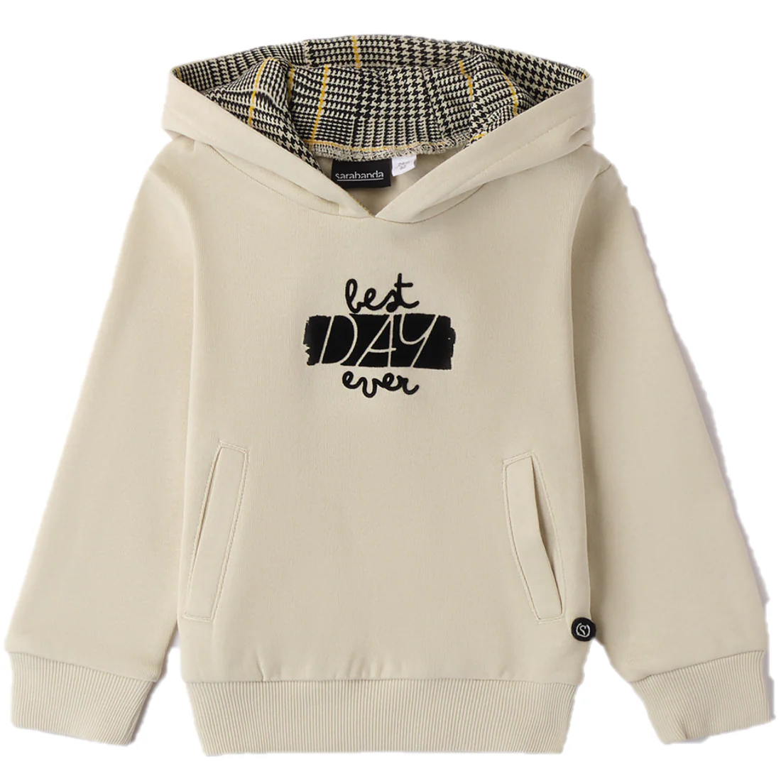 Felpa bambino SARABANDA con interno felpato, modello con cappuccio e rifiniture a contrasto.