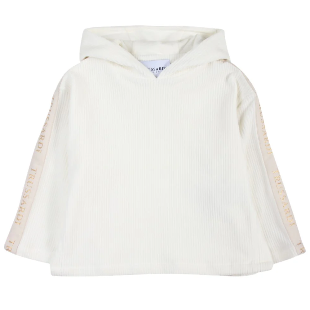 Felpa TRUSSARDI a costine con logo alle maniche glitterato modello con cappucciocodice: TGA23047FE NE PANNA