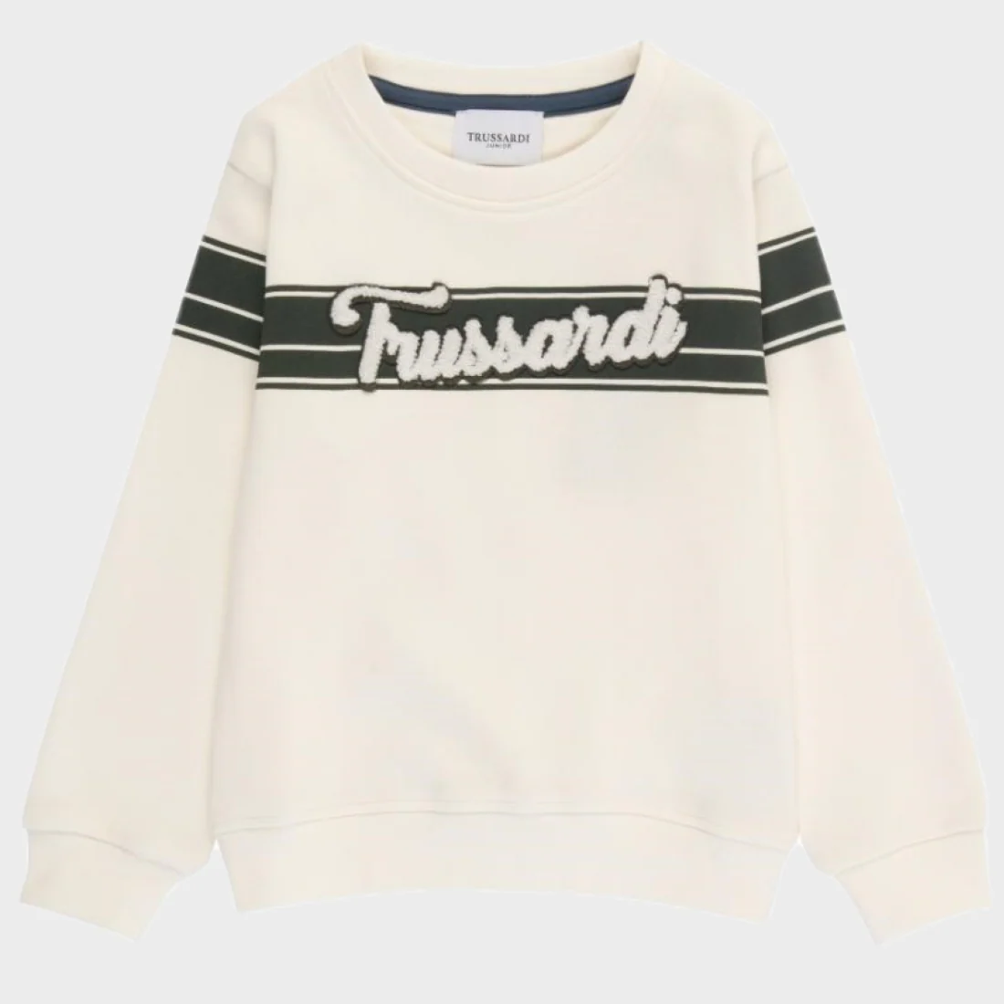 Felpa TRUSSARDI in cotone garzato, stampa a contrasto e logo applicato in tessuto a rilievo.