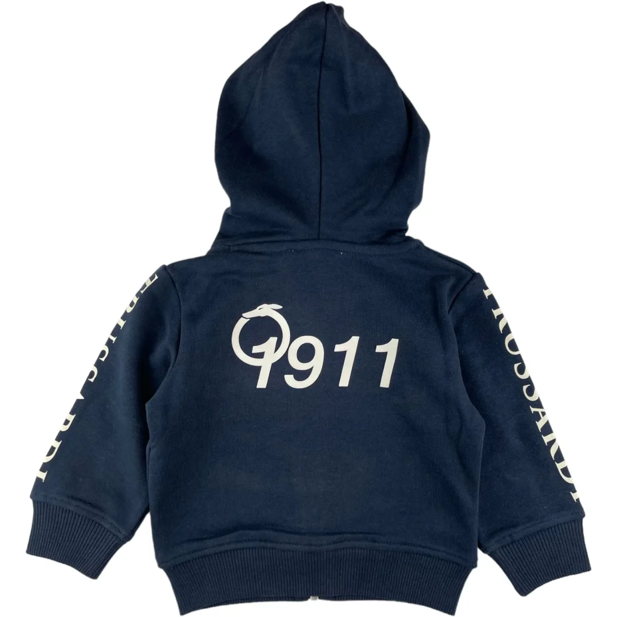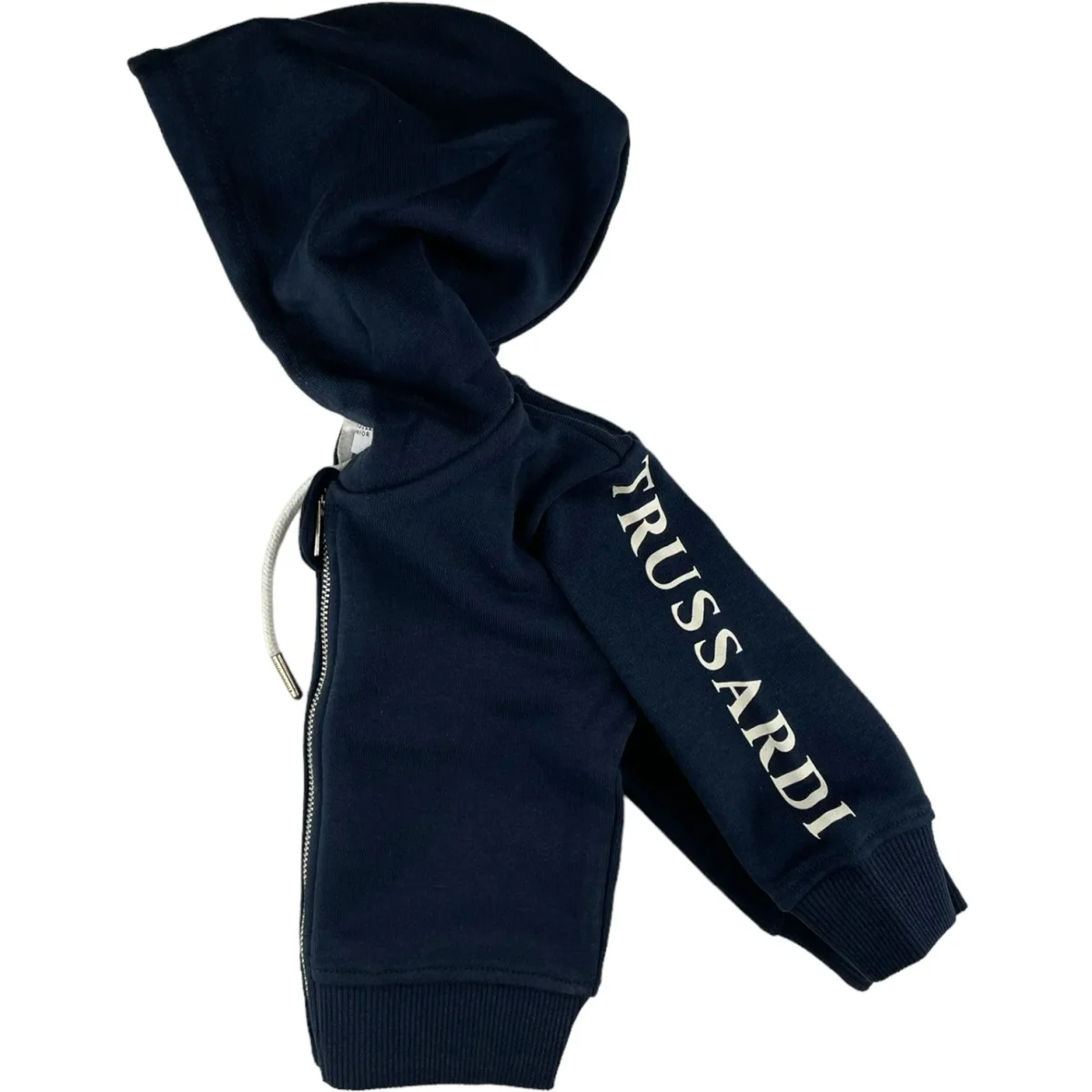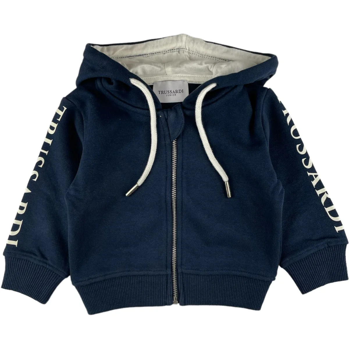 Felpa TRUSSARDI modello con cappuccio e chiusura zip intera loghi a contrasto. interno garzato