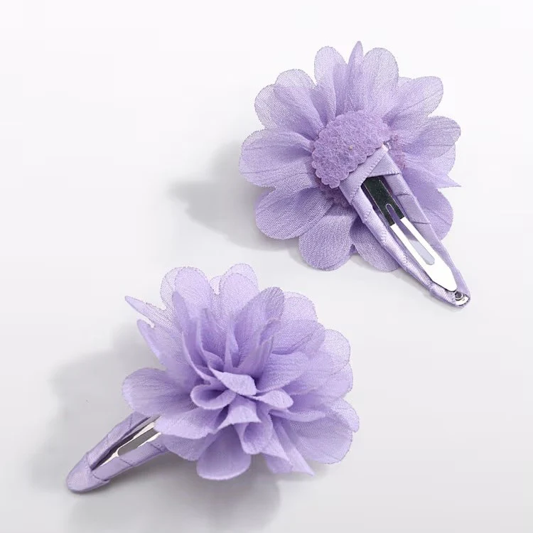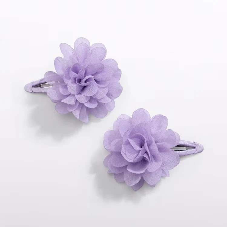 Fermagli ABEL & LULA con fiore in tessuto applicato.