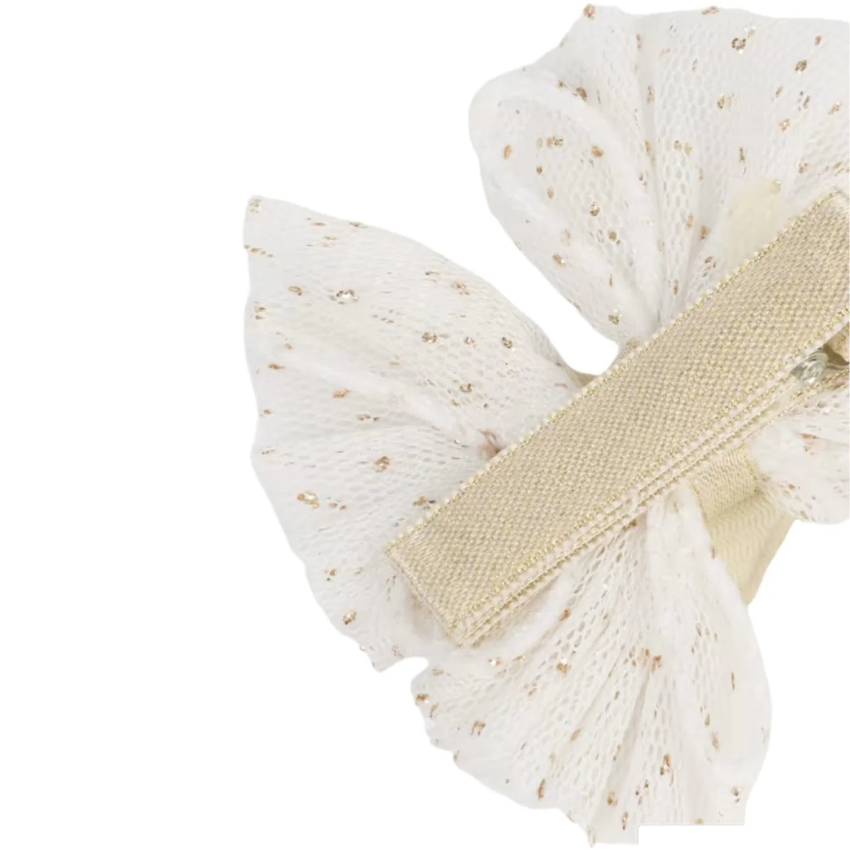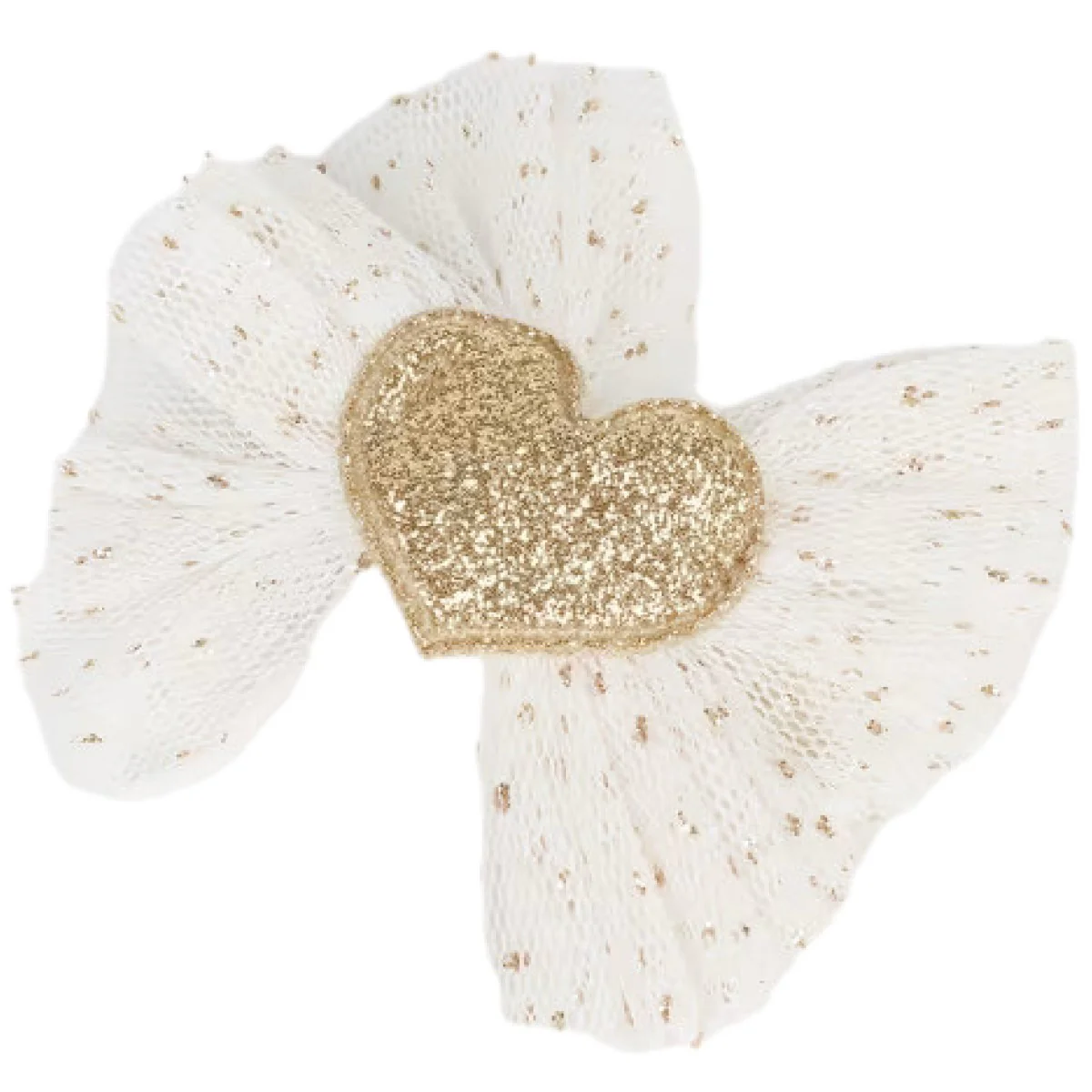 Fermaglio MAYORAL con fiocco in tulle applicato e cuore glitter in colore a contrasto.