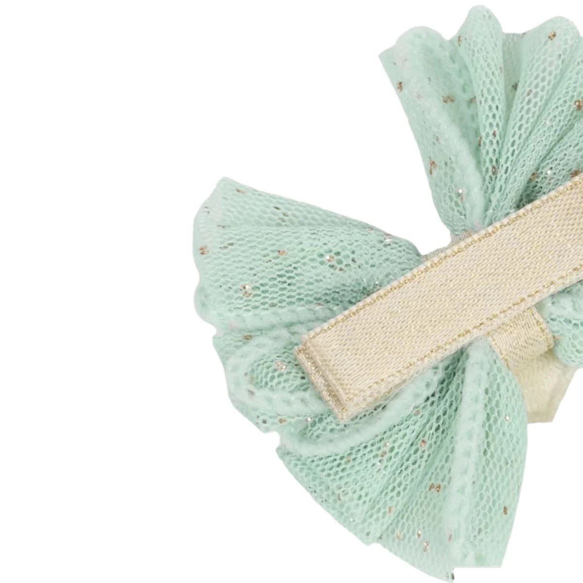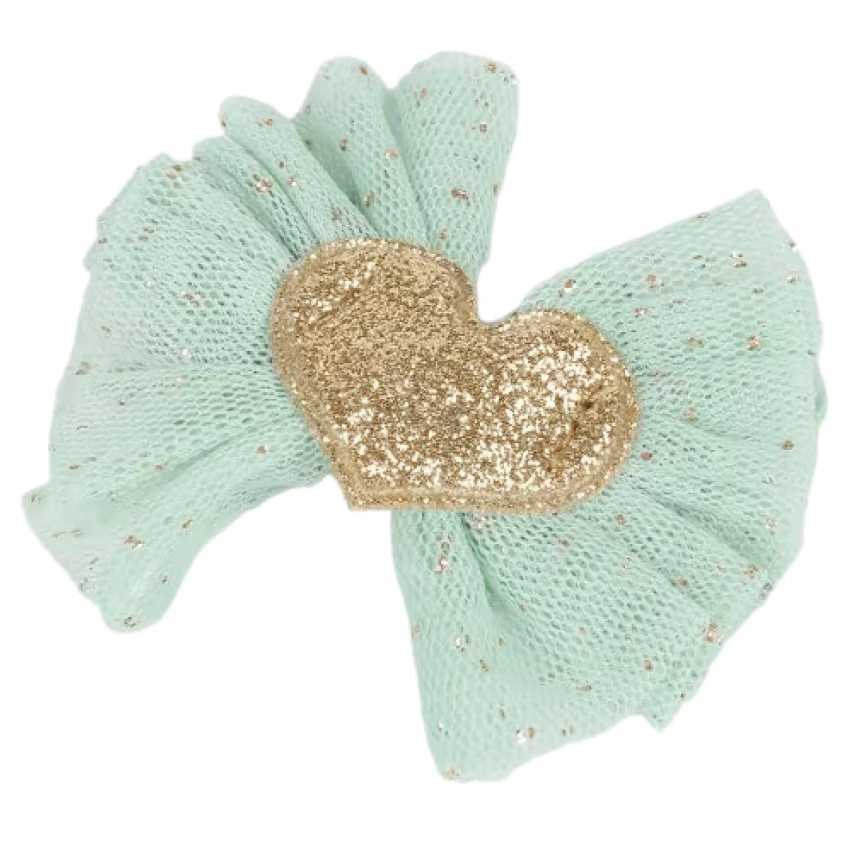 Fermaglio MAYORAL con fiocco in tulle applicato e cuore glitter in colore a contrasto.