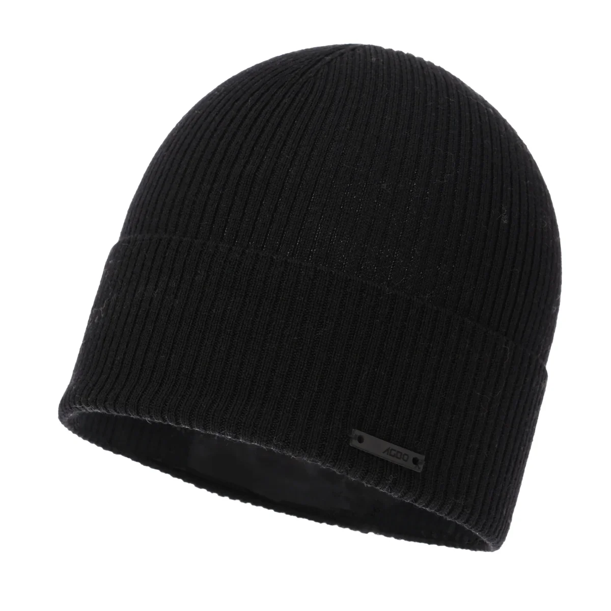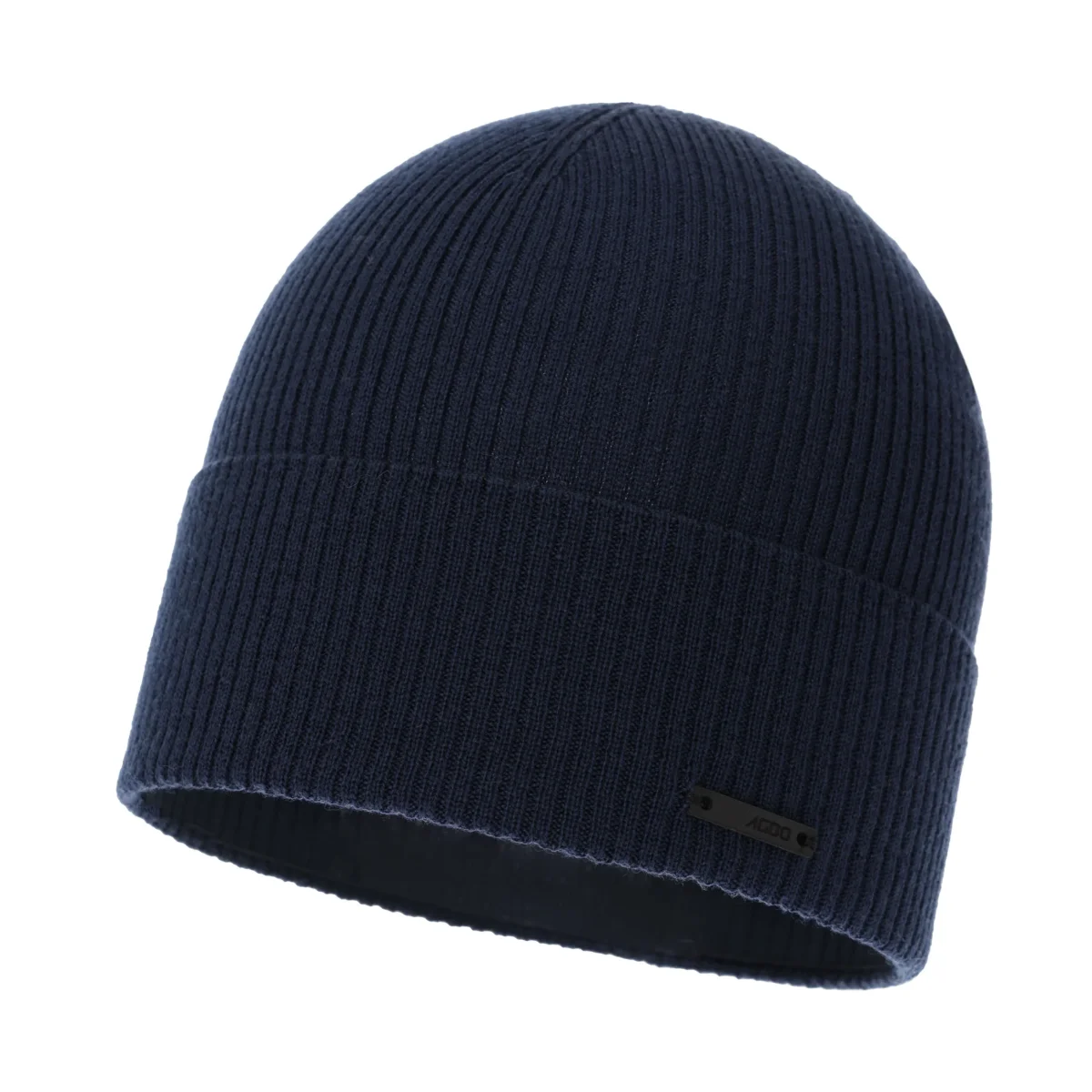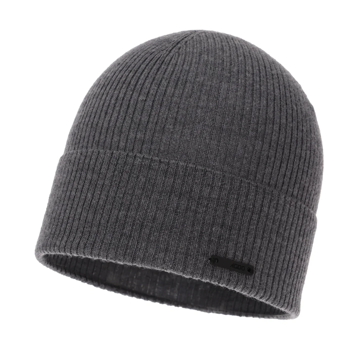 Cappello basic modello cuffia in tessuto 100% lana merino. Tessuto lavorato a costine, logo brand cucito sul risvolto.