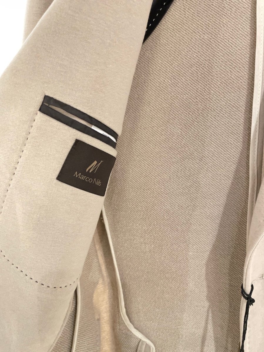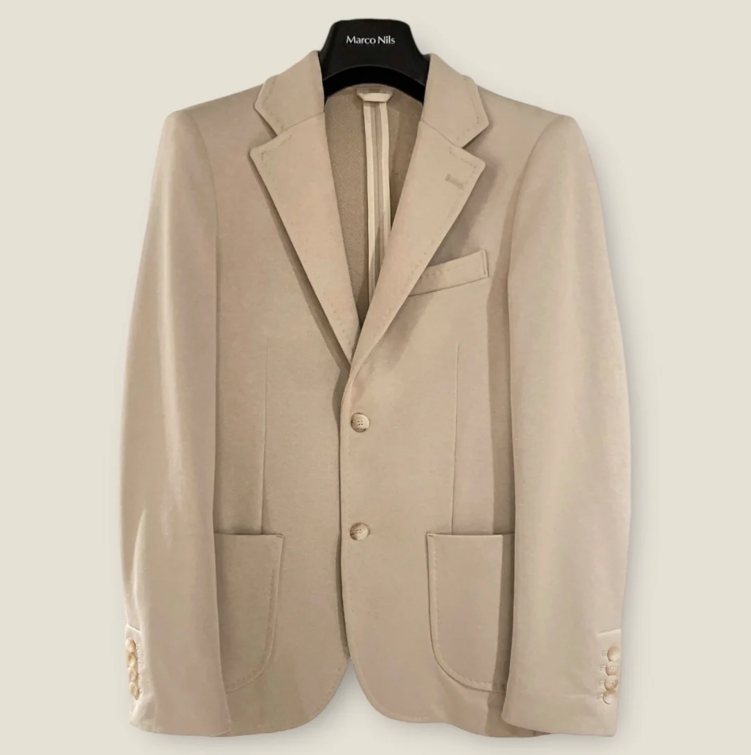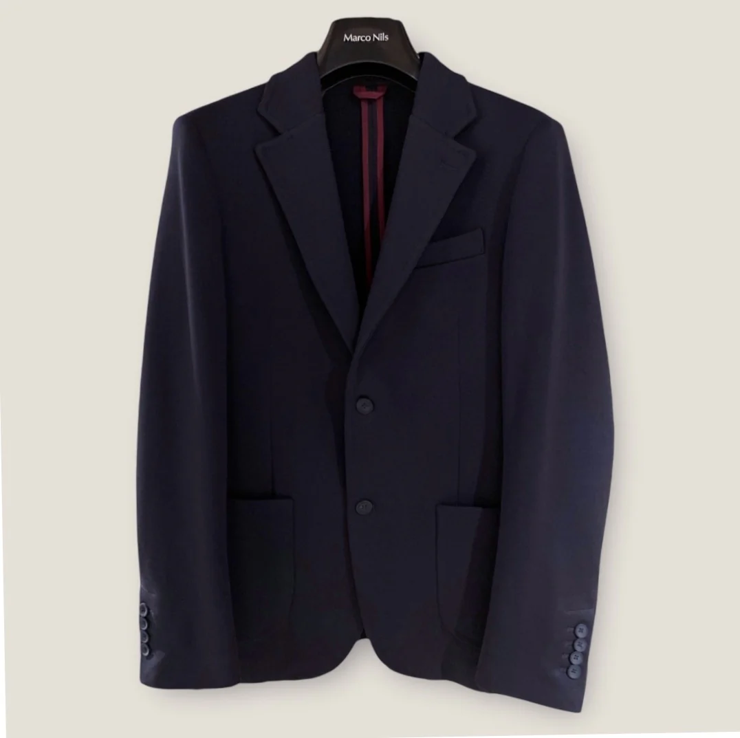 Giacca uomo monopetto in cotone. Collo con revers regolari, tessuto maglina elasticizzata. Taschino sul petto, tasche a toppa applicate. Vestibilità slim. Capo foderato su spalle ed interno braccia. Composizione tessuto 100% cotone.