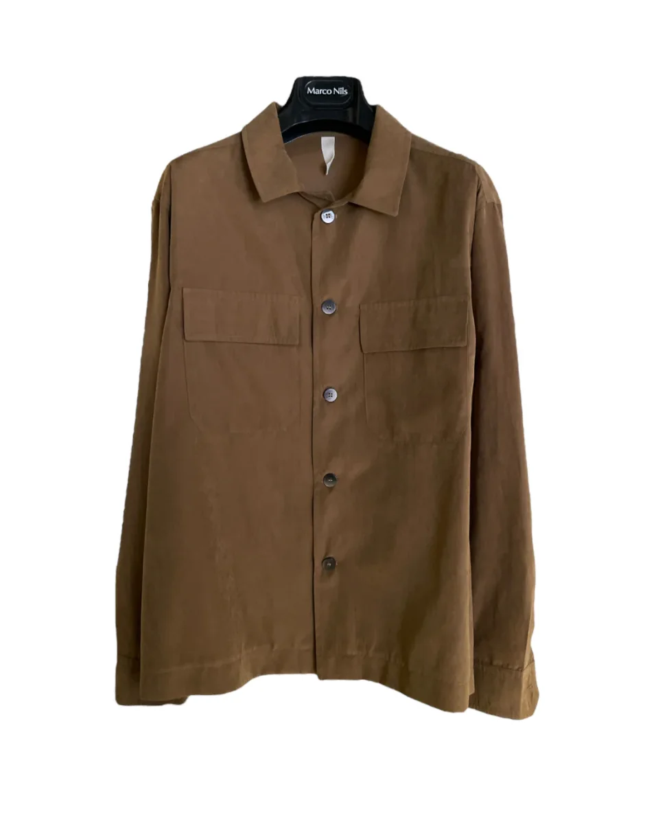 Giacca camicia modello over-shirt in tessuto alcantara. Collo camicia, tasche applicate sul davanti. Chiusura con bottoni in tinta. Vestibilità over. Composizione tessuto 75% poliestere 25% poliammide.