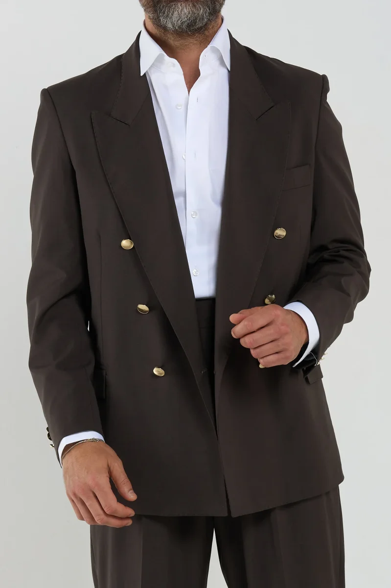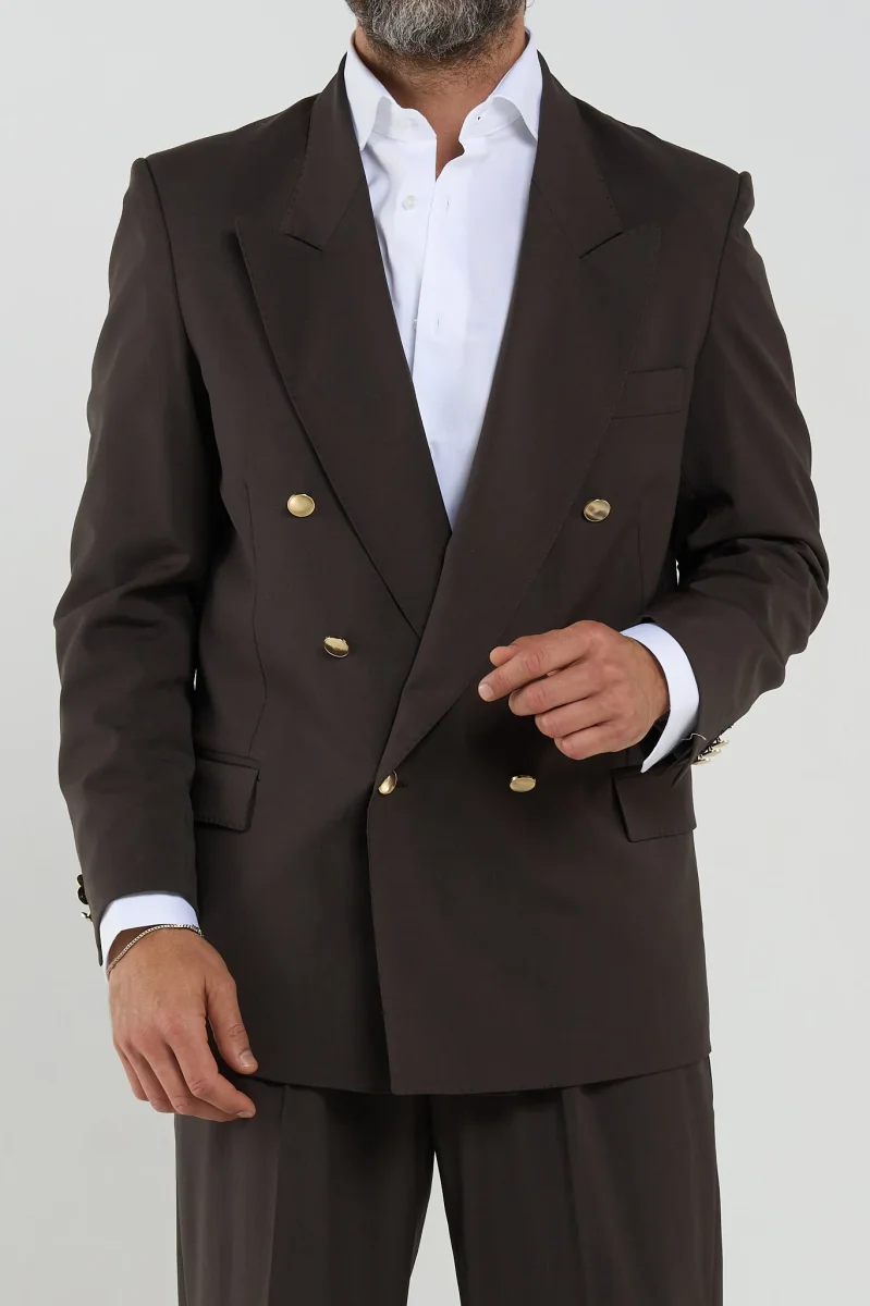 • Revers a lancia ampi e ben strutturati, tipici del doppiopetto formale.