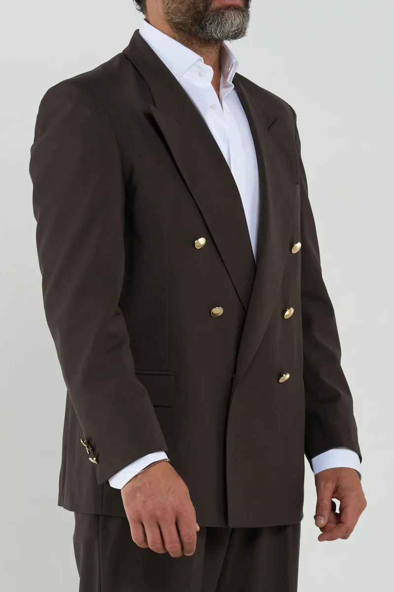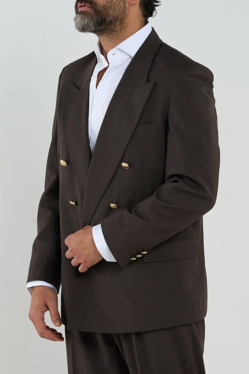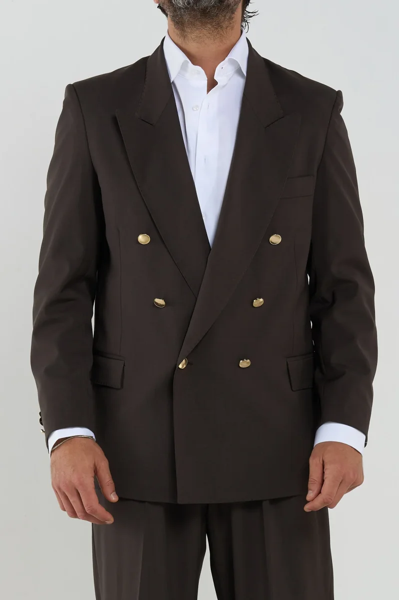 Questa giacca è un capo formale dallo stile classico ed elegante, con caratteristiche distintive che la rendono perfetta per un look raffinato e autorevole. E’ un doppiopetto a sei bottoni in oro light (2×3), con chiusura asimmetrica che donano un forte accento di eleganza. il taglio è un regular fit, non troppo aderente, con caduta naturale e composta e la lunghezza leggermente sotto i fianchi rende la giacca da tradizione sartoriale.