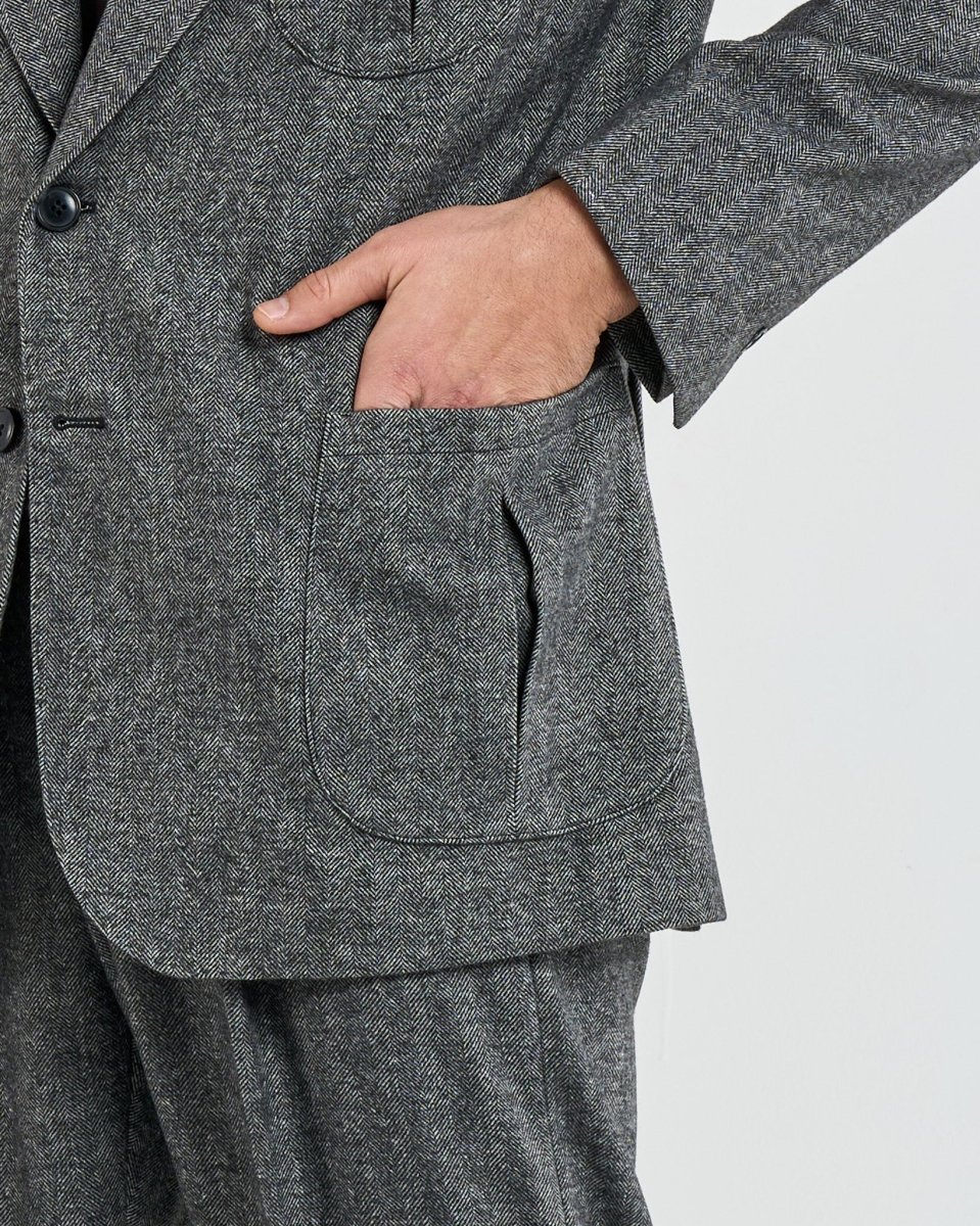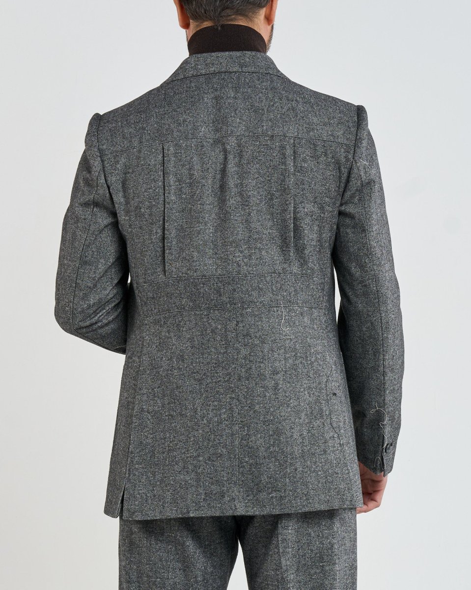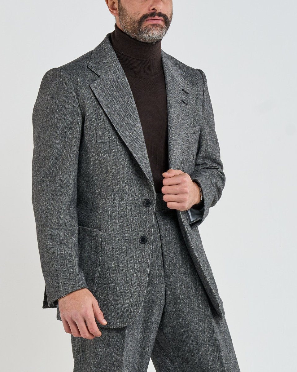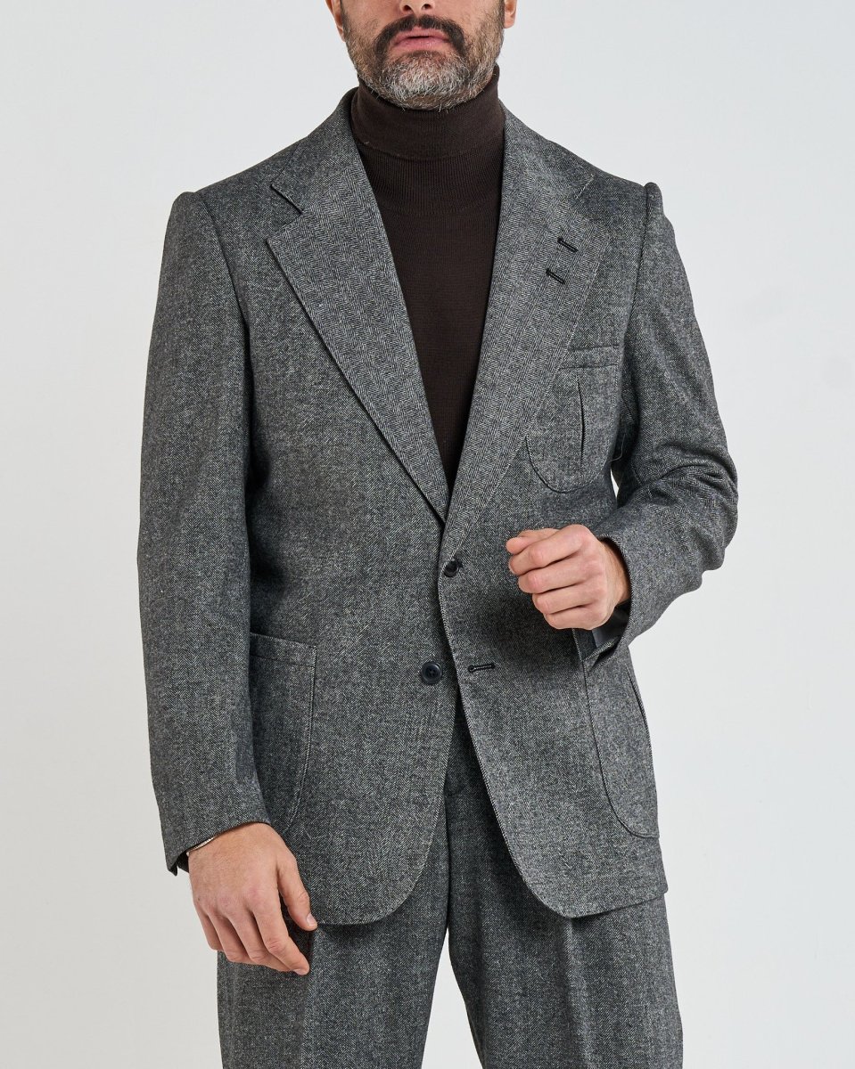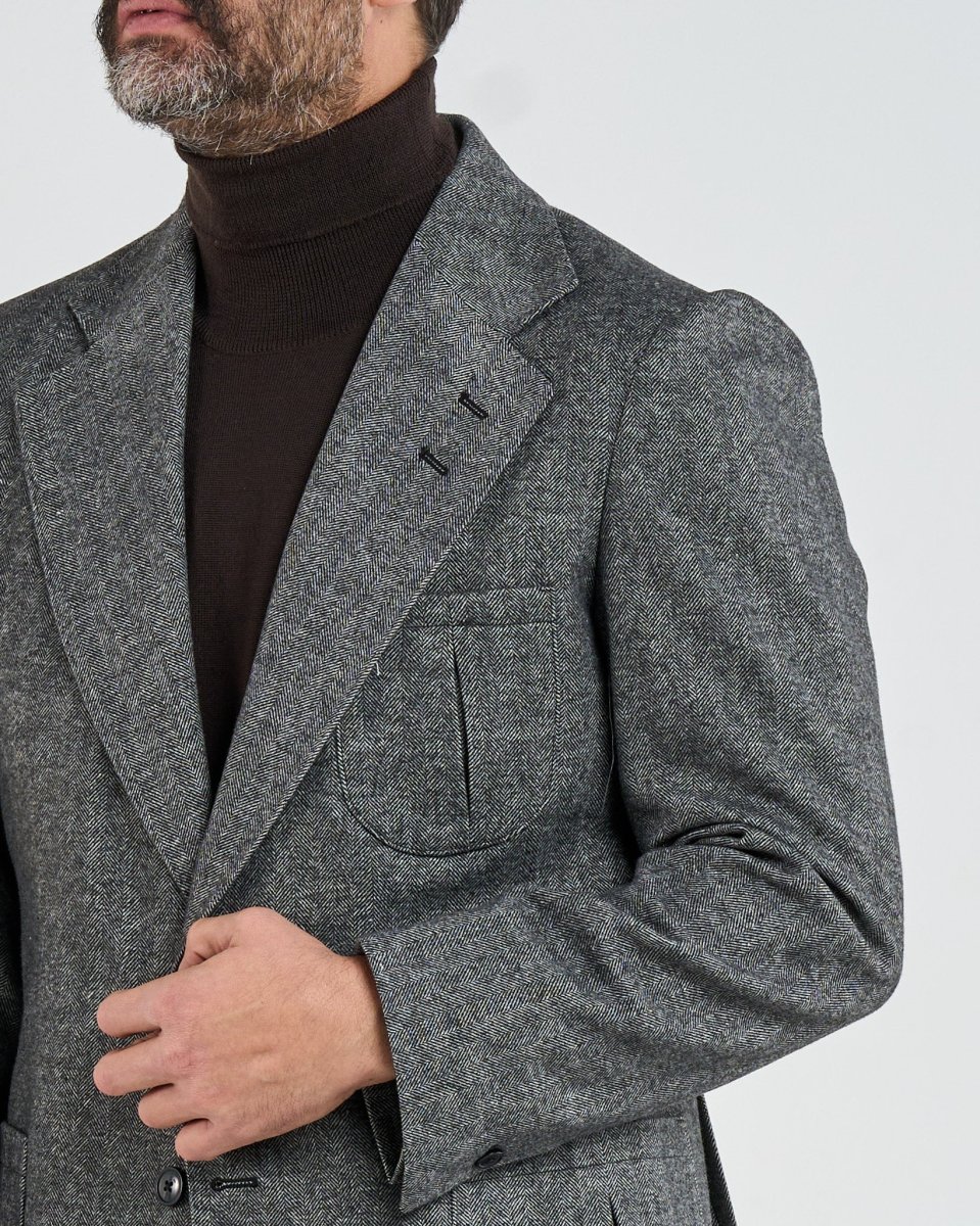 Questa giacca monopetto in lana combina la tradizione sartoriale italiana con un’attitudine contemporanea. Il colore scuro, profondo e raffinato, valorizza le linee pulite e la costruzione morbida, pensata per seguire naturalmente la silhouette senza costrizioni. I rever a lancia ampi e le tasche applicate donano personalità e versatilità: perfetta con il dolcevita per un look raffinato da giorno, o con camicia e pantaloni coordinati per un completo impeccabile.