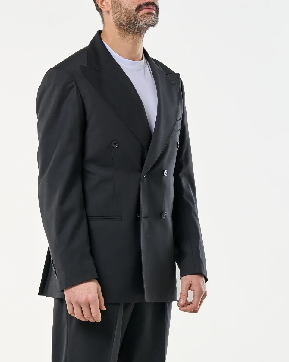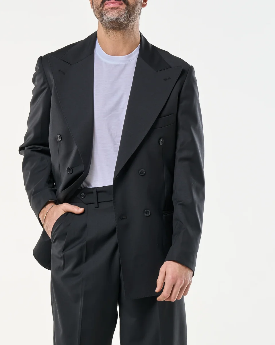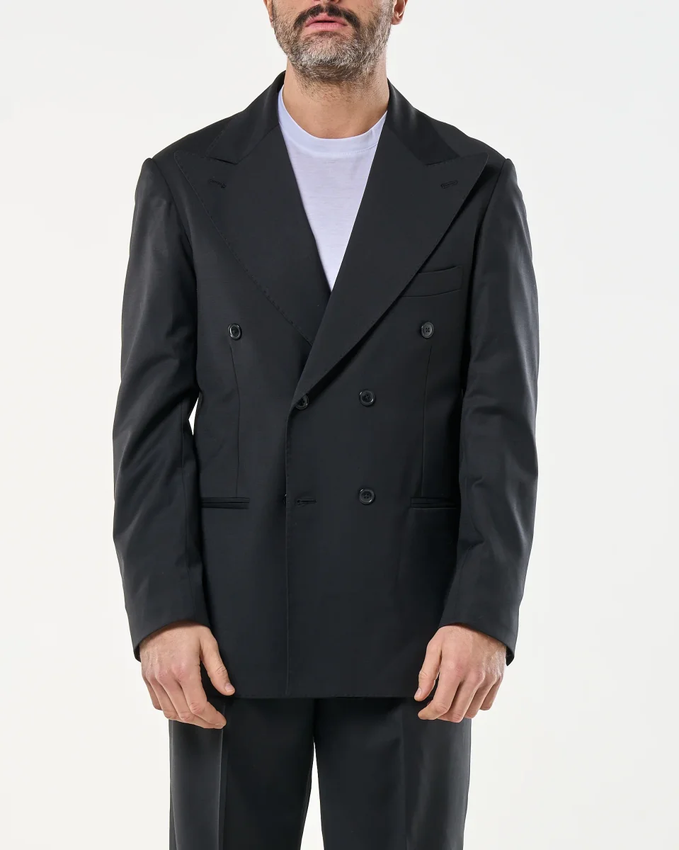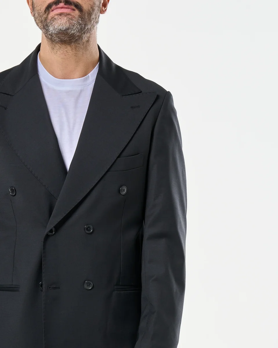 Recensisci per primo “Giacca Doppiopetto Abbottonatura Centrale con Rever a Lancia Nero Milano”