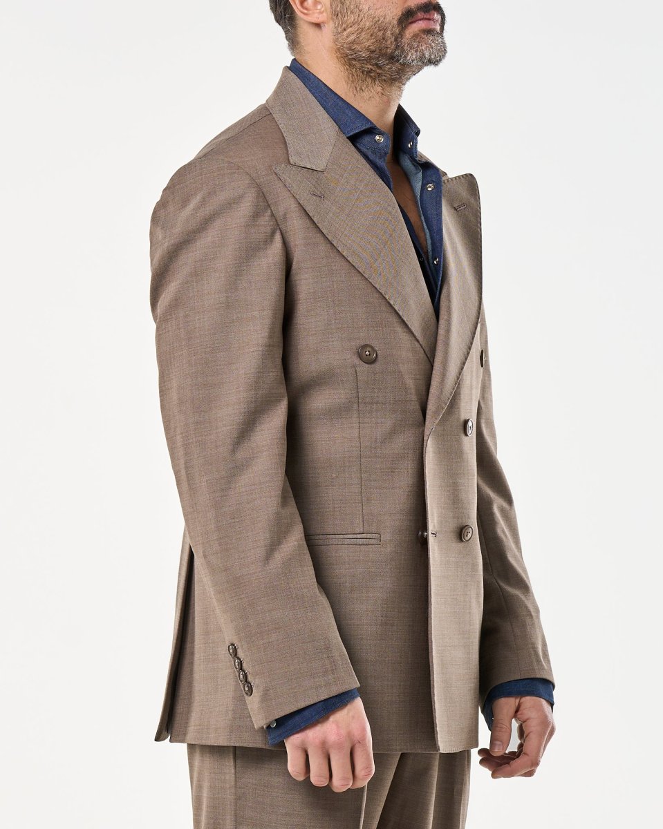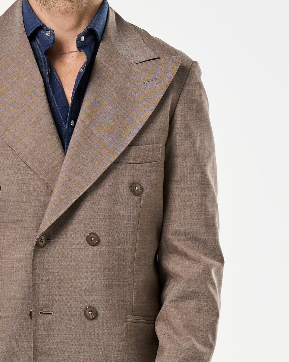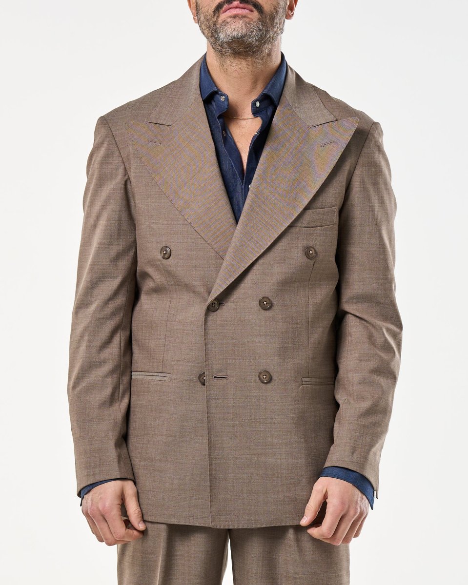 Giacca Doppiopetto Abbottonatura Centrale con Rever a Lancia Tortora Taormina
