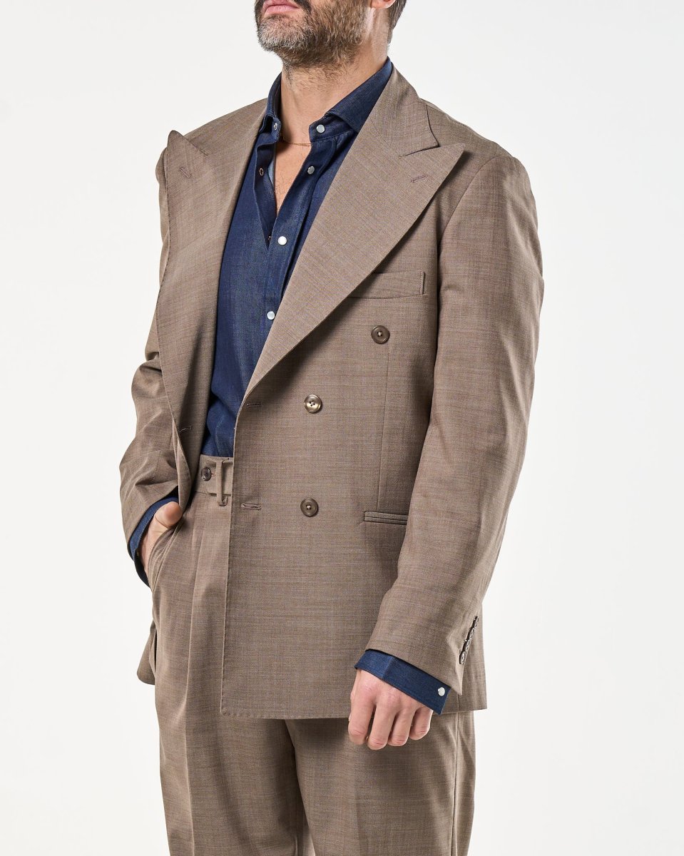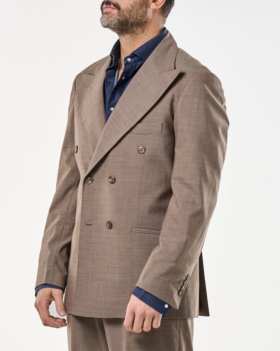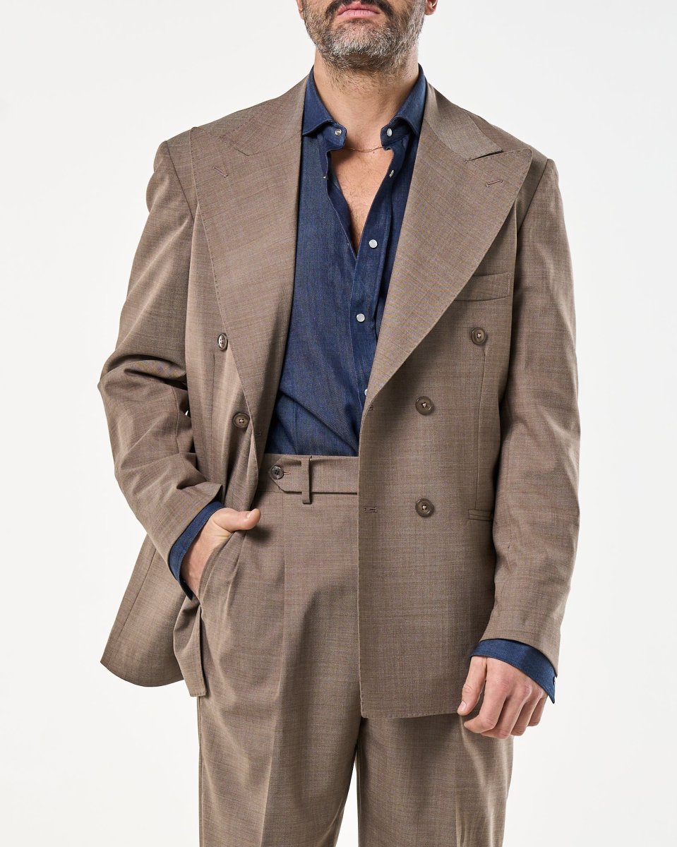 Giacca Doppiopetto Abbottonatura Centrale con Rever a Lancia Tortora Taormina