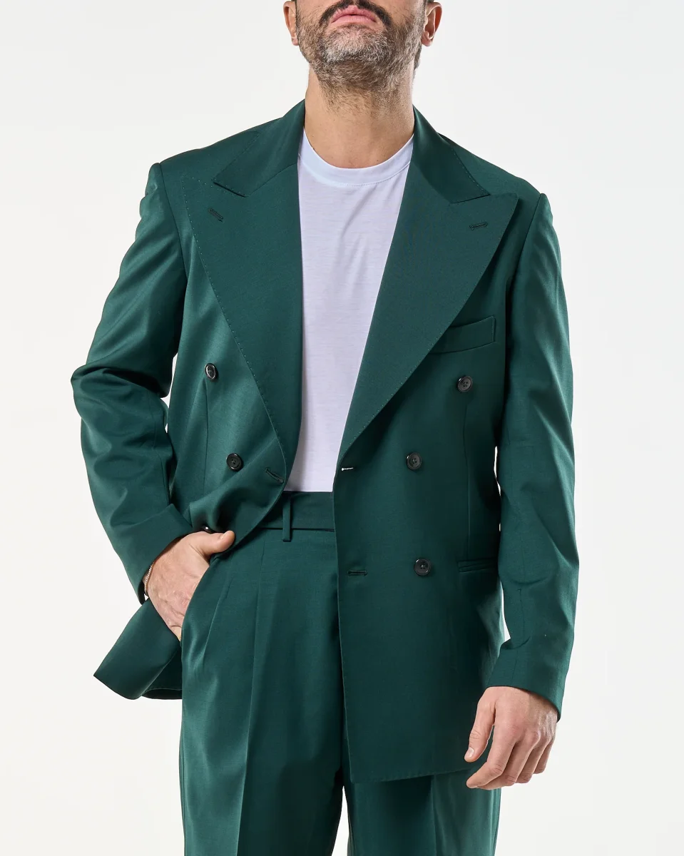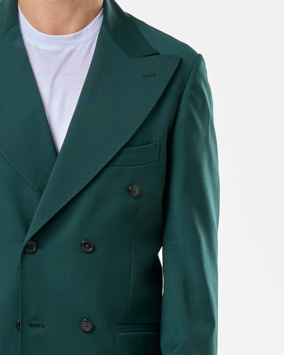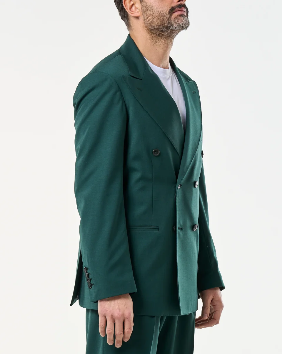 Abbiamo reinterpretato la nostra giacca iconica ma questa volta con una abbottonatura centrale 6×2, rever a lancia leggermente arrotondato e spallina liscia senza arriccio, per un equilibrio perfetto tra struttura e naturalezza. Un fit pulito, essenziale, che valorizza la linea del corpo senza costrizioni. È la nostra visione dell’eleganza contemporanea: più libera, più autentica, ma sempre impeccabile.