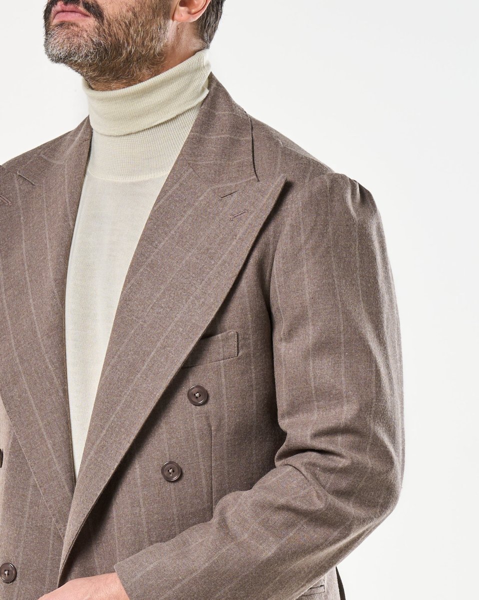 La giacca doppiopetto Jocket rappresenta l’equilibrio perfetto tra sartorialità classica e stile contemporaneo. Si distingue per la sua linea pulita e la sua vestibilità impeccabile. Il rever a lancia ampio e strutturato dona un aspetto deciso e sofisticato, mentre la chiusura a sei bottoni con abbottonatura bassa, sull’ultimo bottone, conferisce un tocco di tradizione e modernità. Ideale per occasioni formali, ma facilmente abbinabile anche in contesti meno convenzionali, questa giacca è un must-have per l’uomo che ama esprimere eleganza e personalità attraverso i propri outfit.