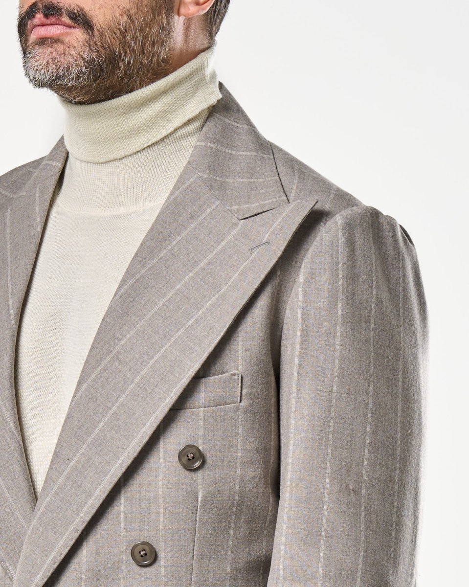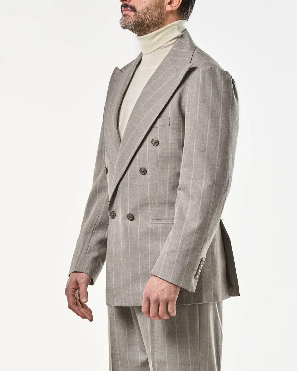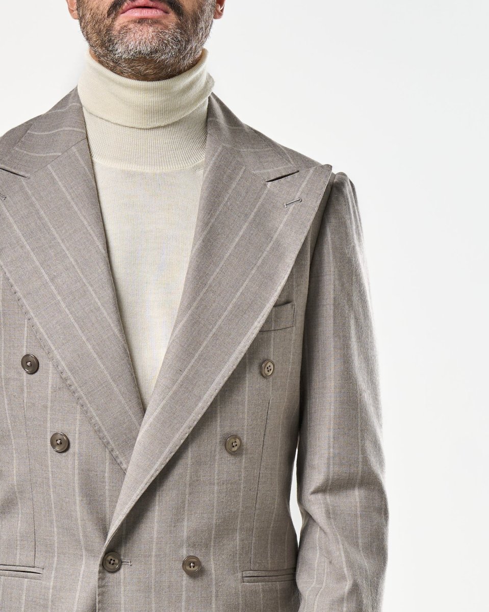 Giacca Jocket in Lana Gessato Sabbia e Panna Matera