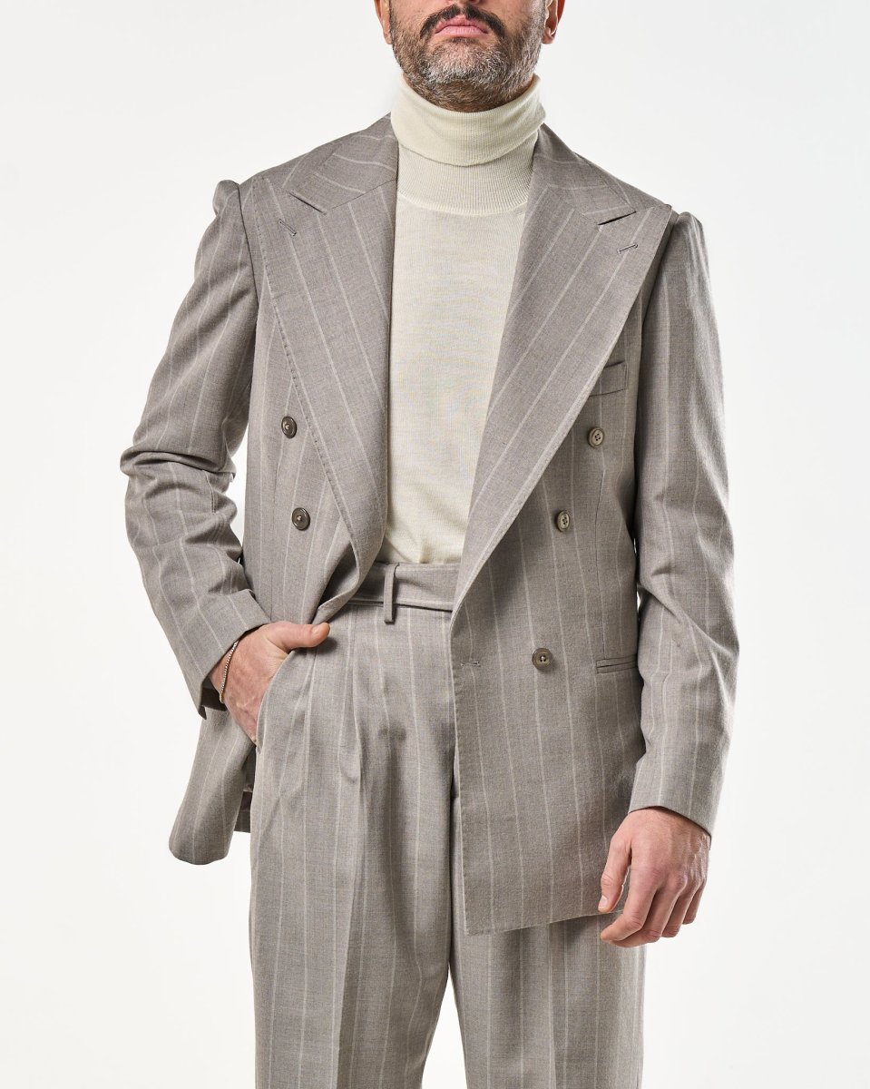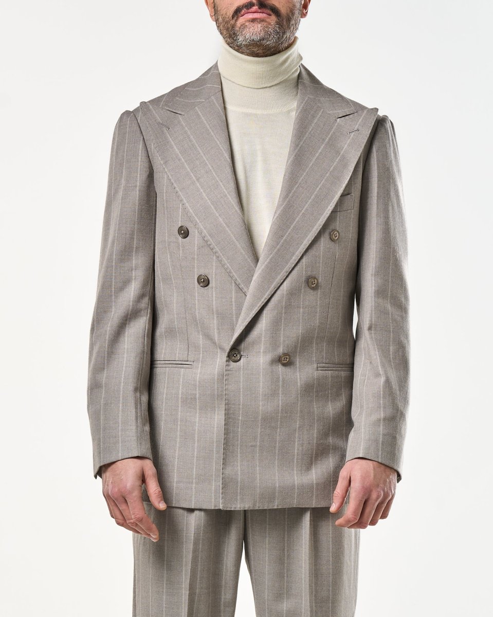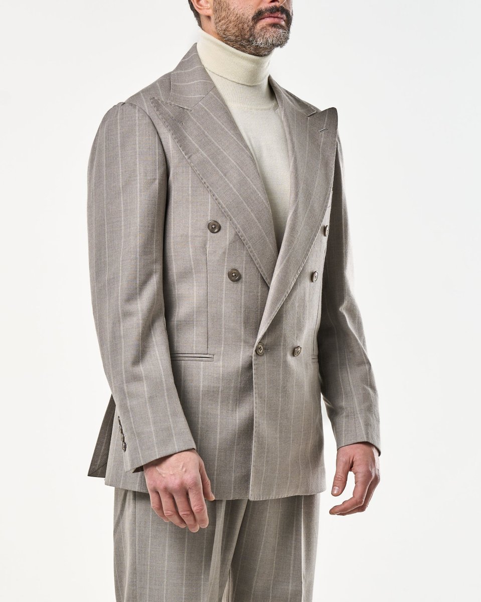 Giacca Jocket in Lana Gessato Sabbia e Panna Matera
