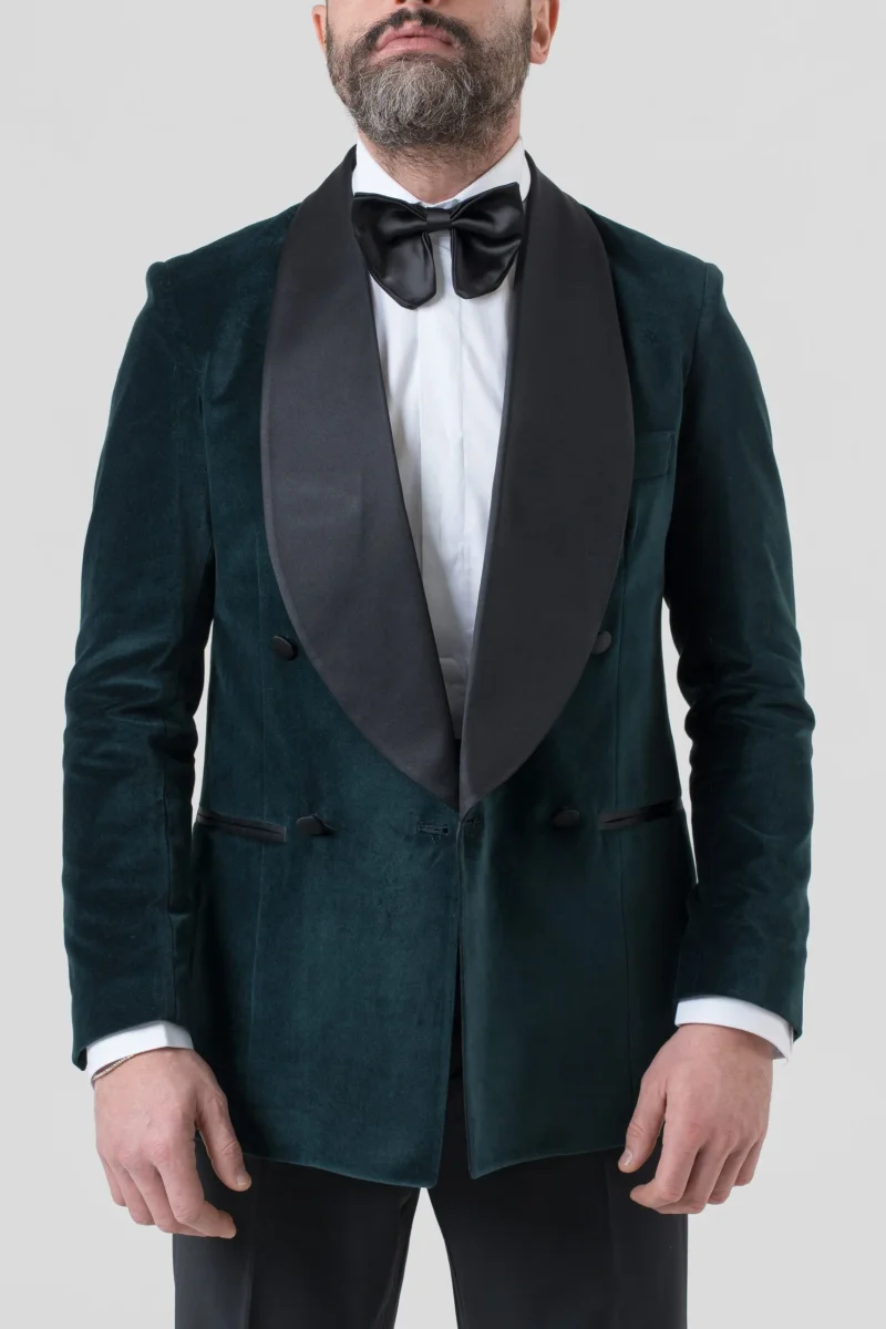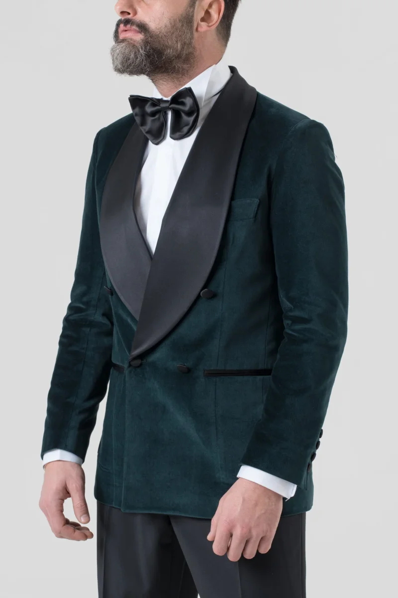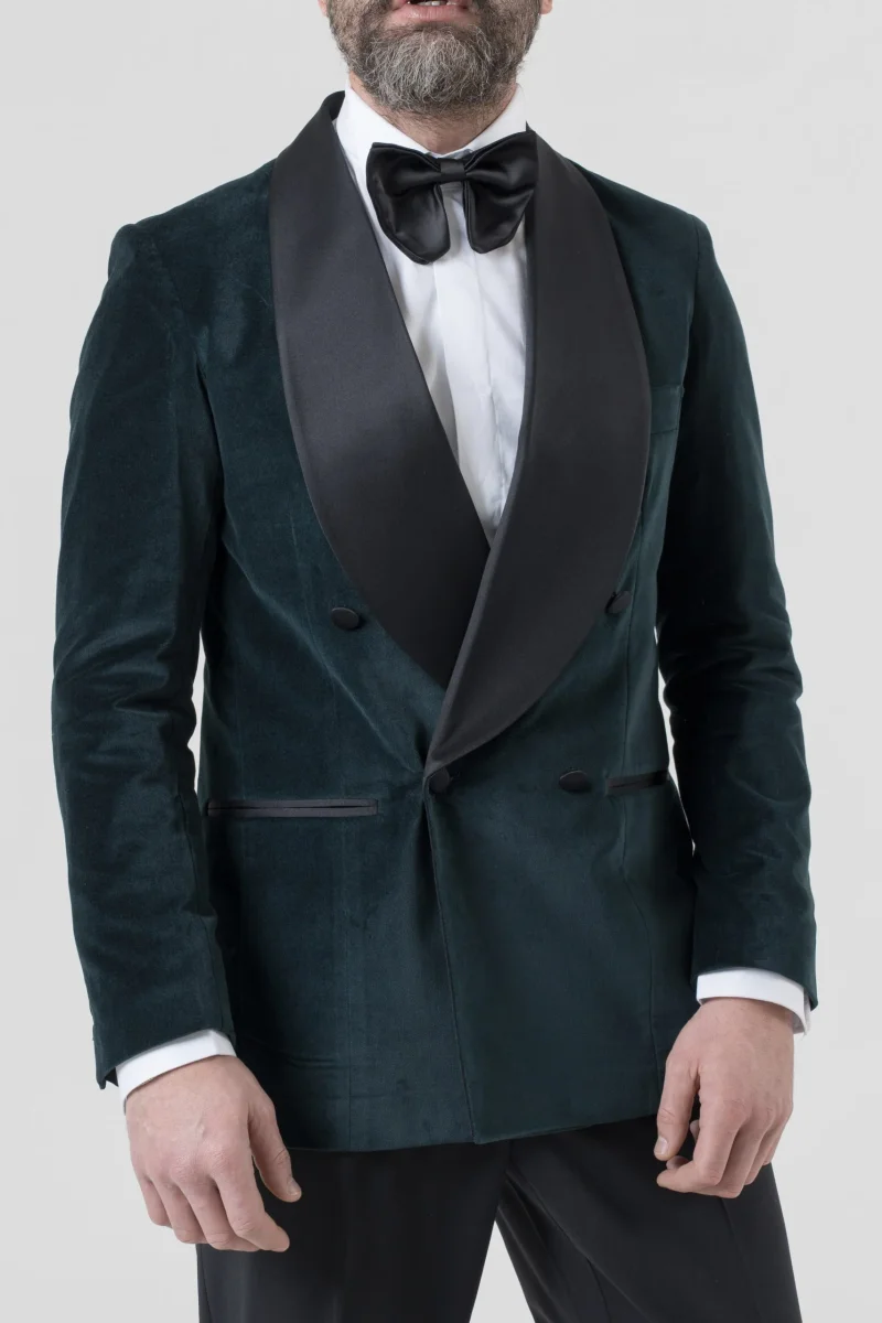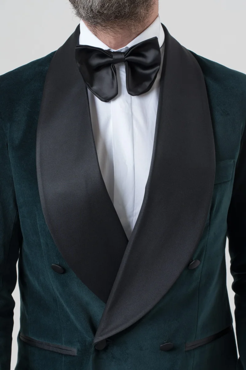 Abbinata con una camicia bianca e un papillon in raso nero esprime il tradizionale concetto del black tie.