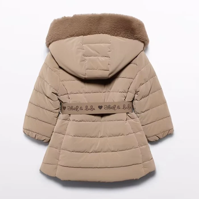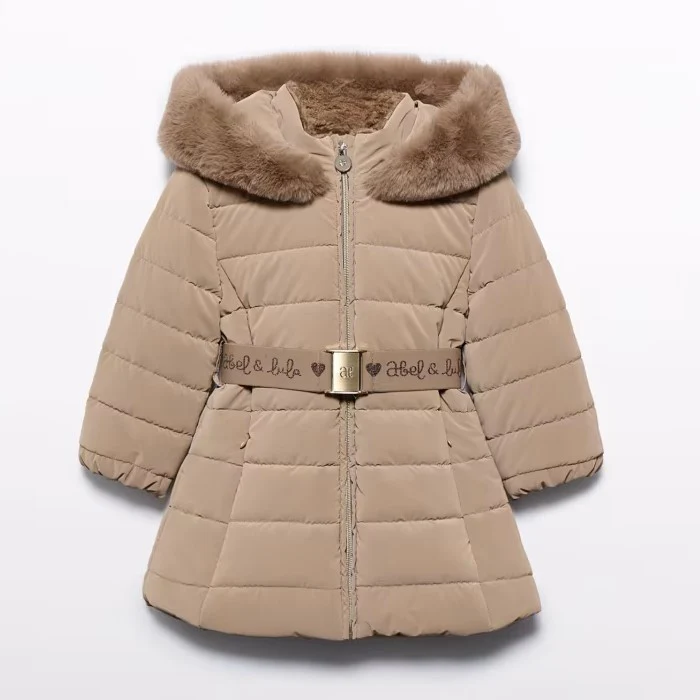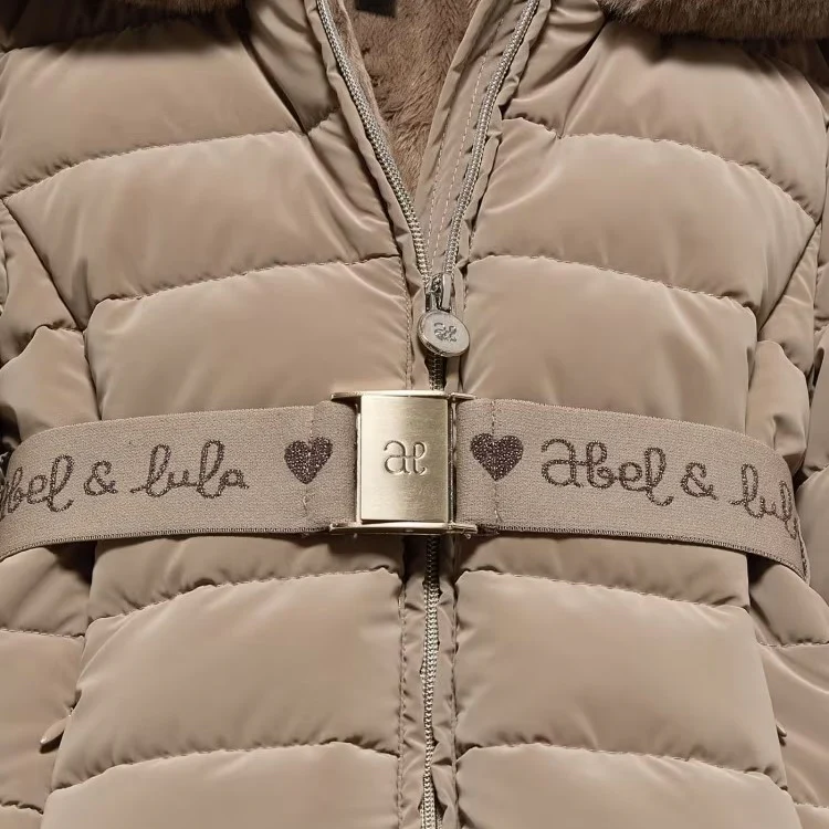 Giubbotto ABEL&LULA con cappuccio con bordo in ecopelliccia, chiusura zip con cursore logato, tasche laterali con chiusura zip, elastici ai polsini, interno in morbida ciniglia. Dotato di cintura elastica logata con fibbia.