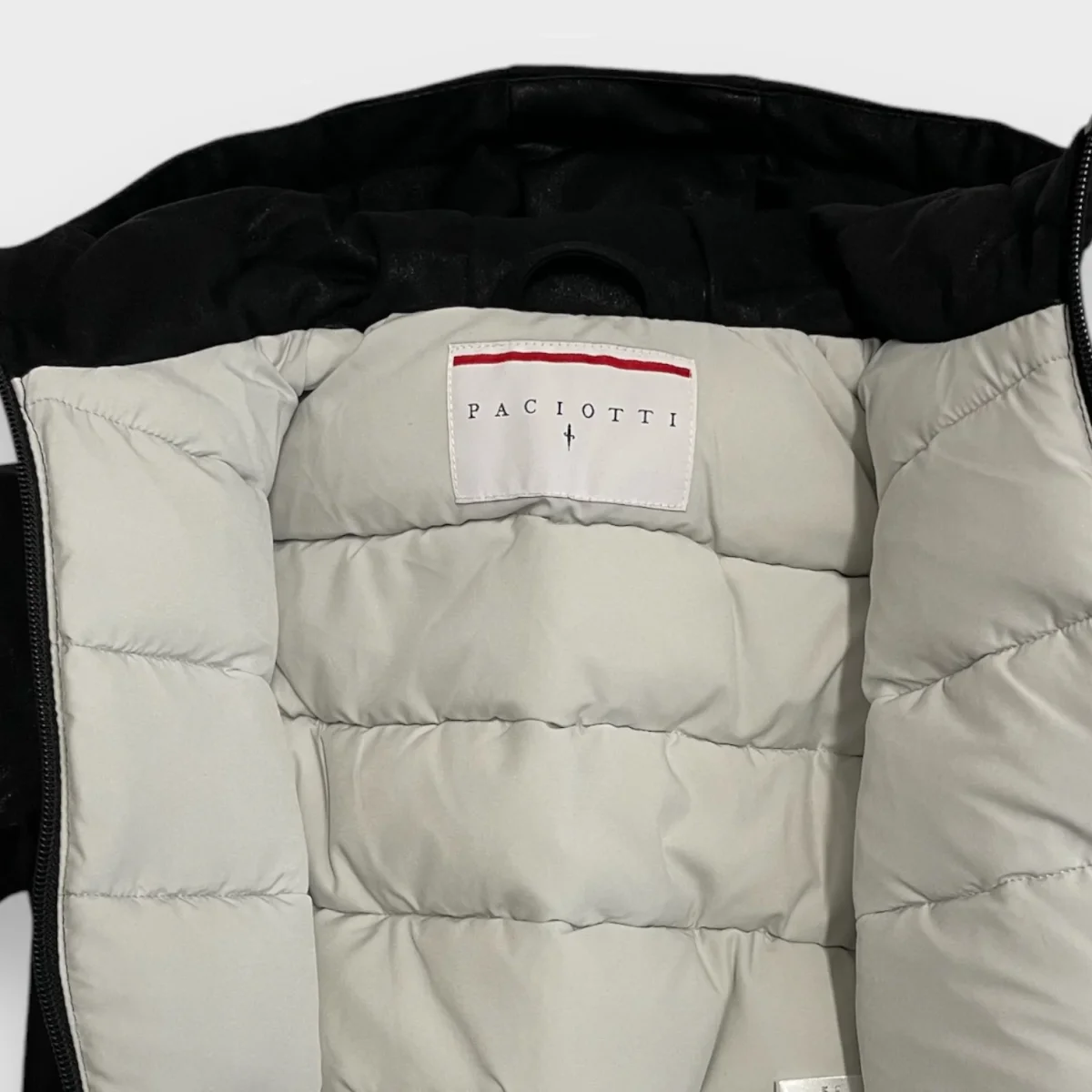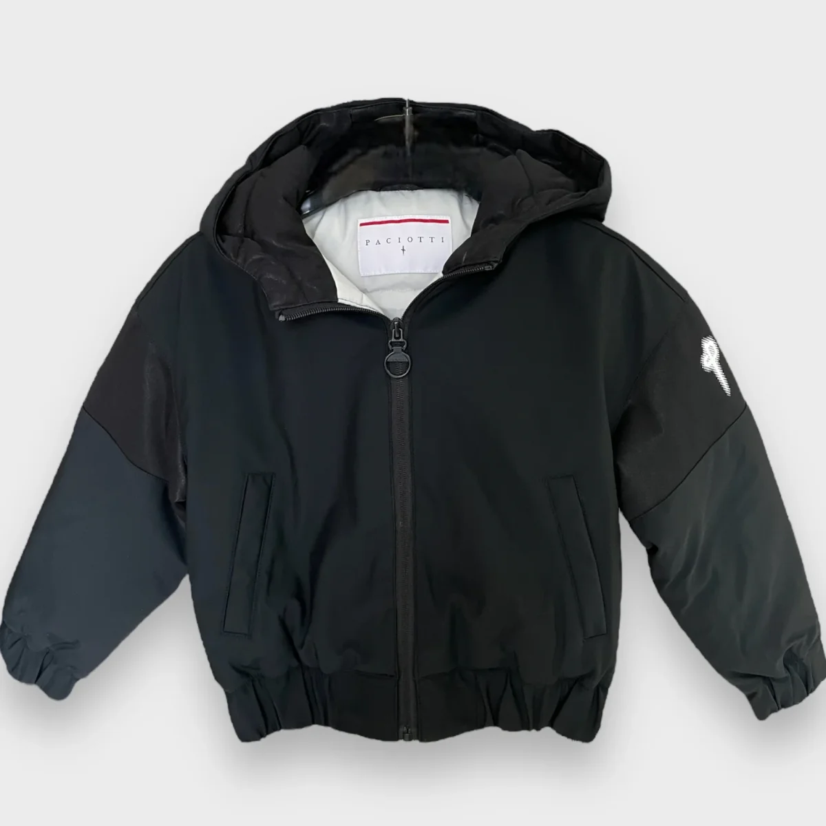 Giubbotto CESARE PACIOTTI modello con cappuccio, chiusura zip intera, stampa logo sul retro.