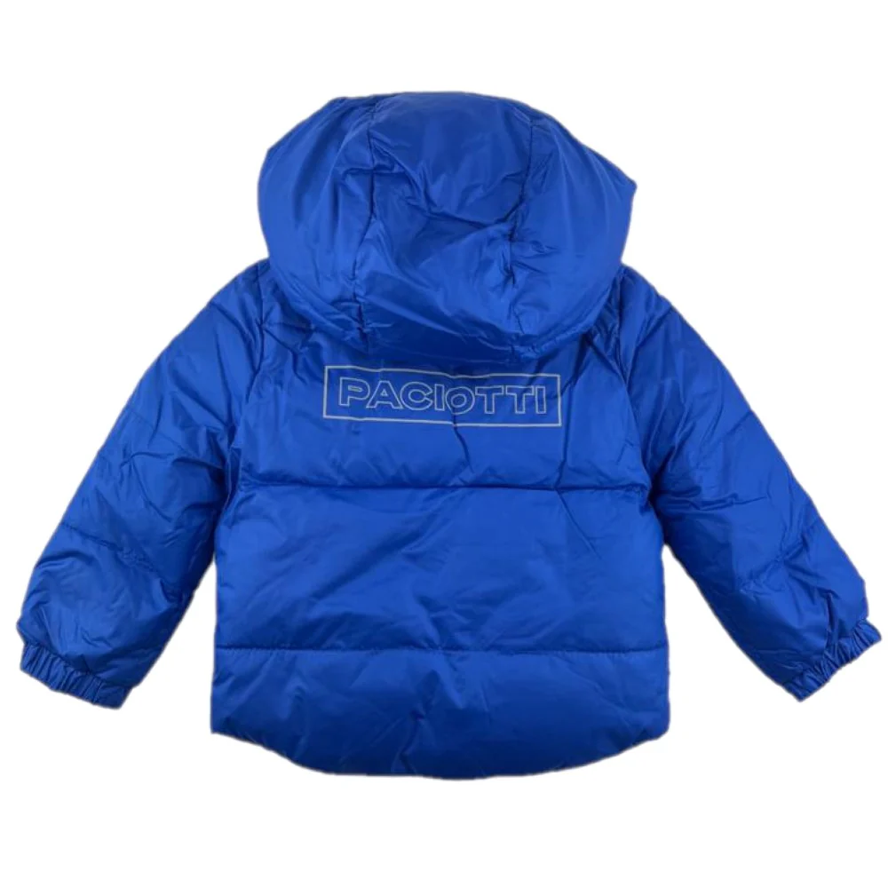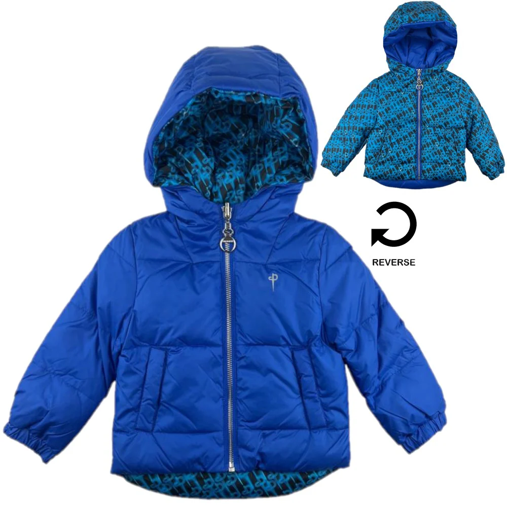 Giubbotto CESARE PACIOTTI con cappuccio modello reversibile da un lato tinta unita e dall’altro fantasia logata tasche laterali con chiusura clips chiusura con zip con cursore logato.