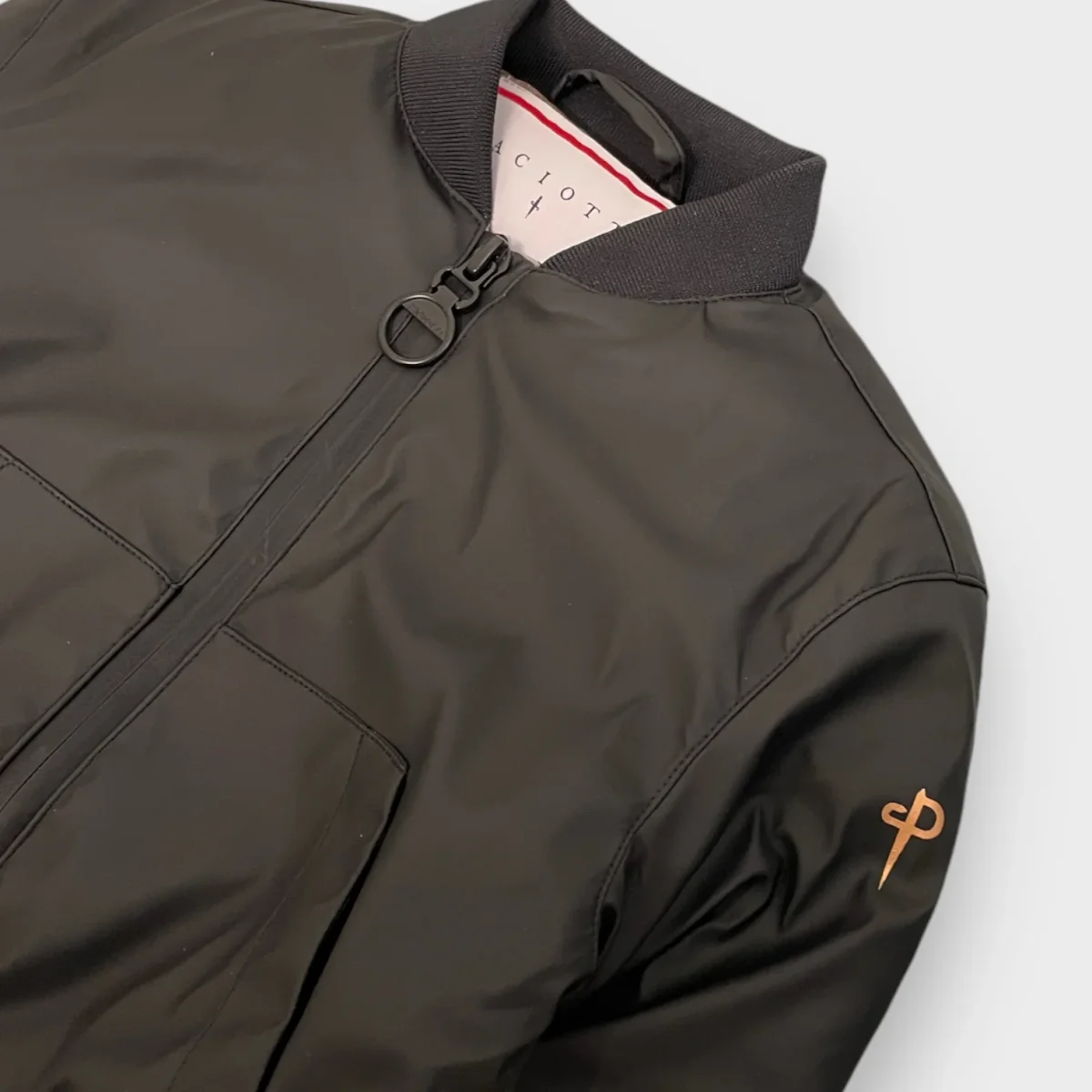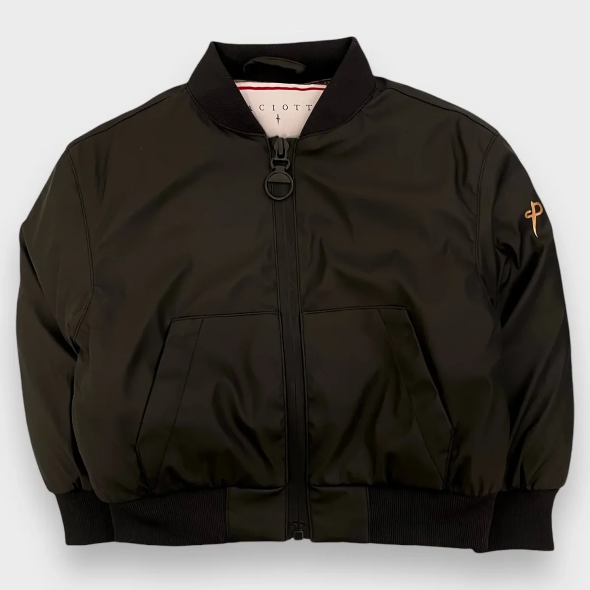 Giubbotto CESARE PACIOTTI imbottito, con logo a contrasto sulla manica, chiusura zip intera, colorazione nero opaco.