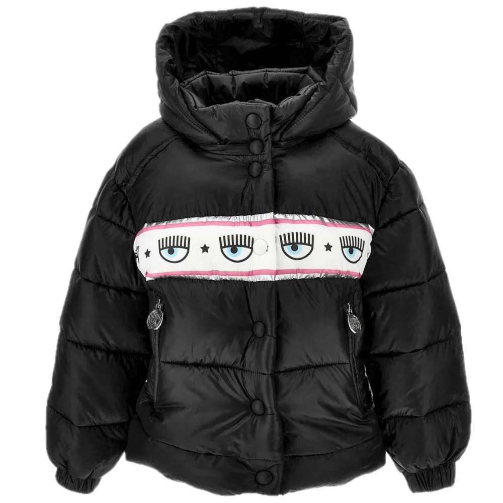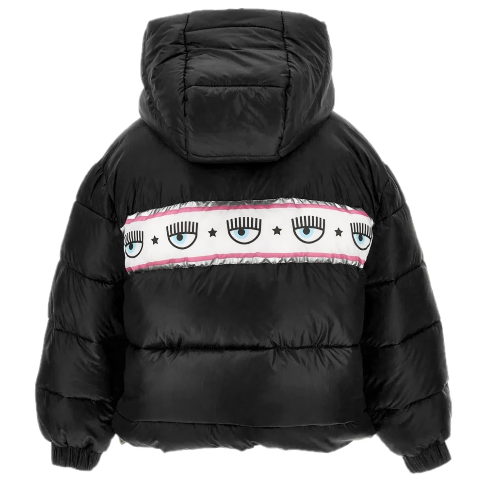 Giubbotto CHIARA FERRAGNI modello con cappuccio rimovibile mediante zip chiusura con zip con cursore logato e clips elastico ai polsini tasche laterali con chiusura zip con cursore logato stampa logo CHIARA FERRAGNI a contrasto.