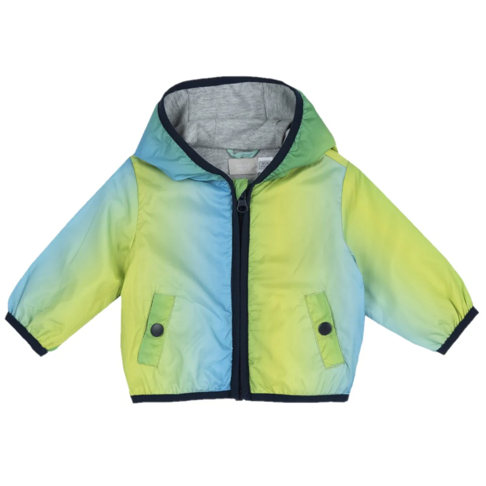 Giubbotto CHICCO in tessuto tecnico a fantasia multicolor effetto sfumato con cappuccio chiusura con zip tasche laterali con chiusura clips fodera interna in cotone.