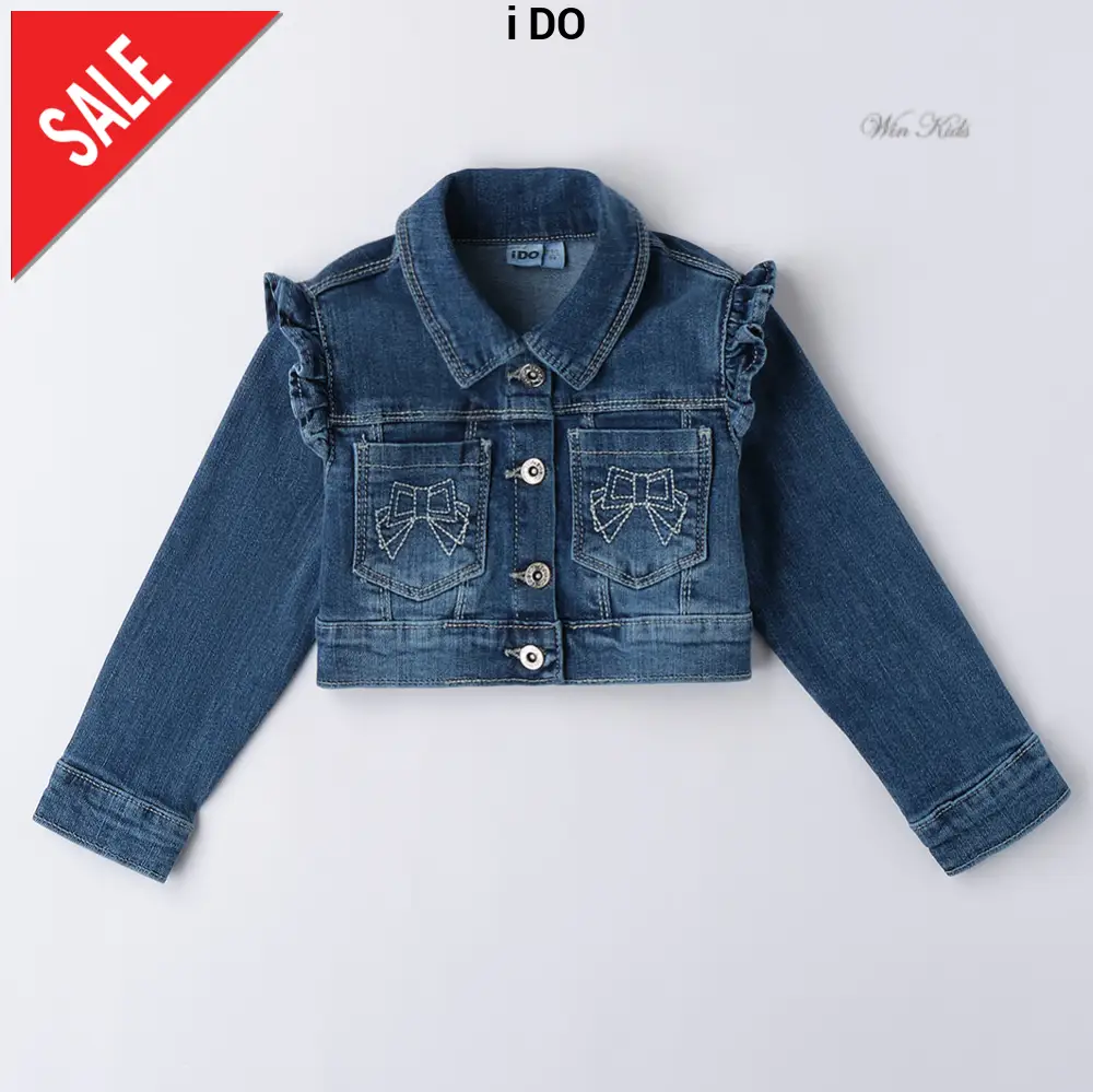 Giubbotto I DO in jeans per bambina modello corto con ricami.
