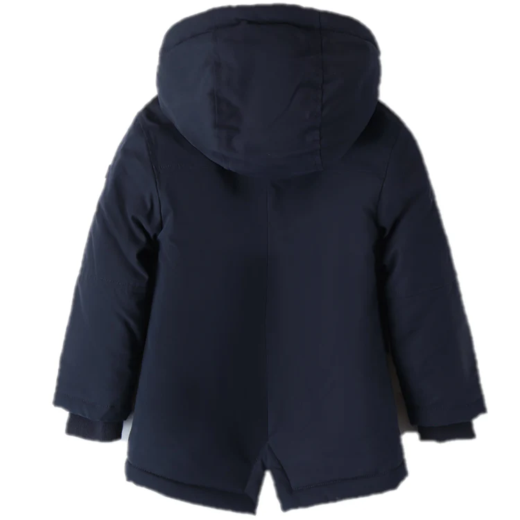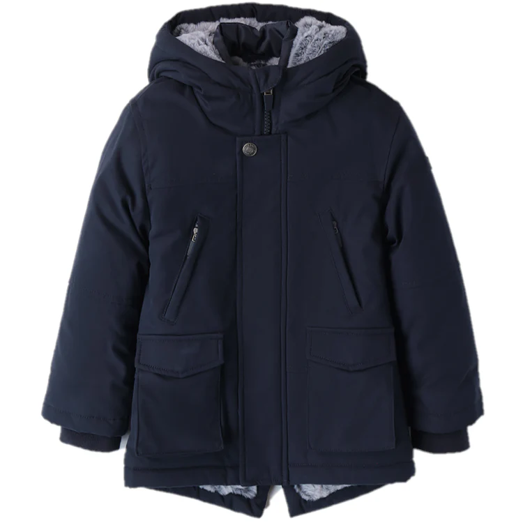 Giubbotto bambino i DO modello parka con cappuccio, chiusura zip intera, interno in ecopelliccia.