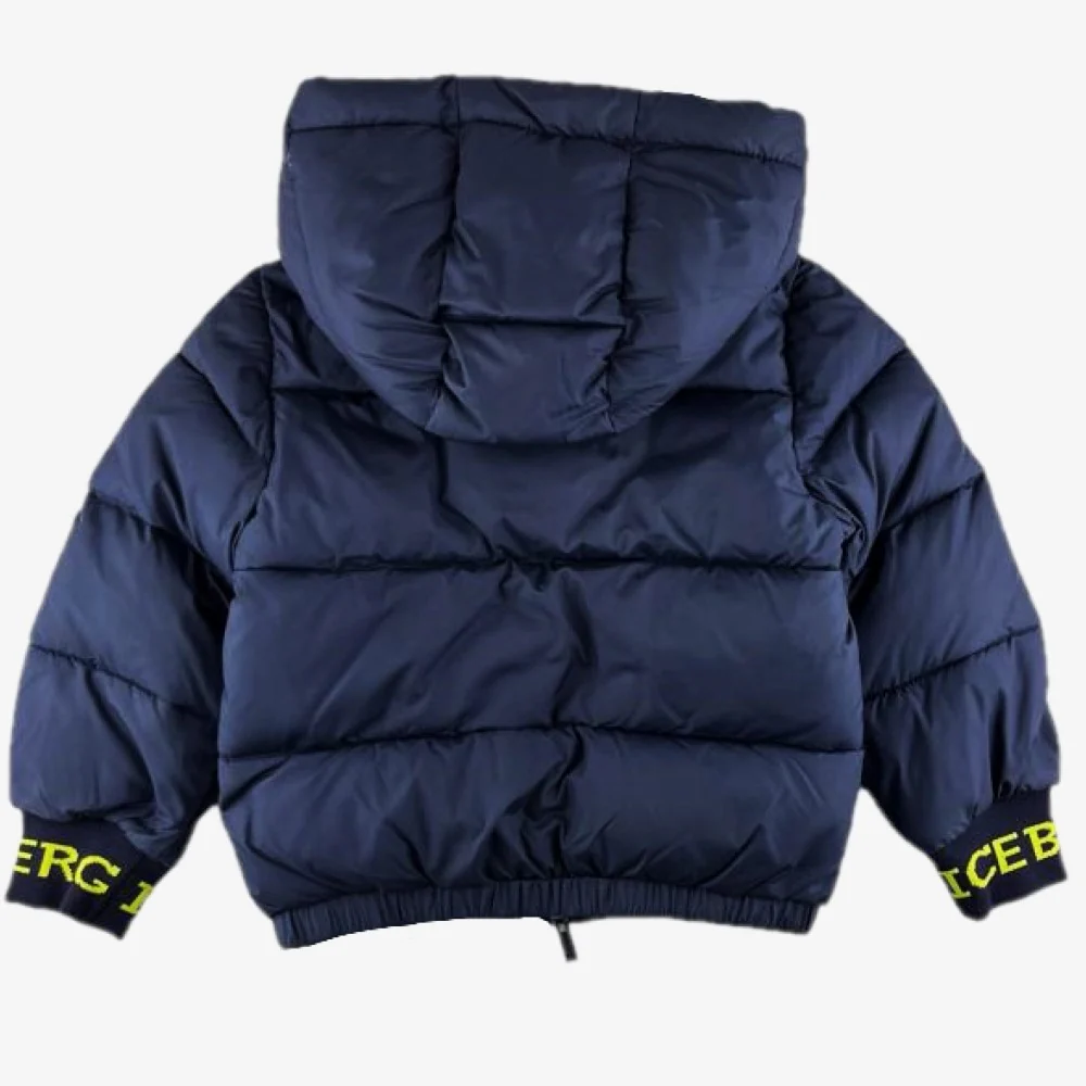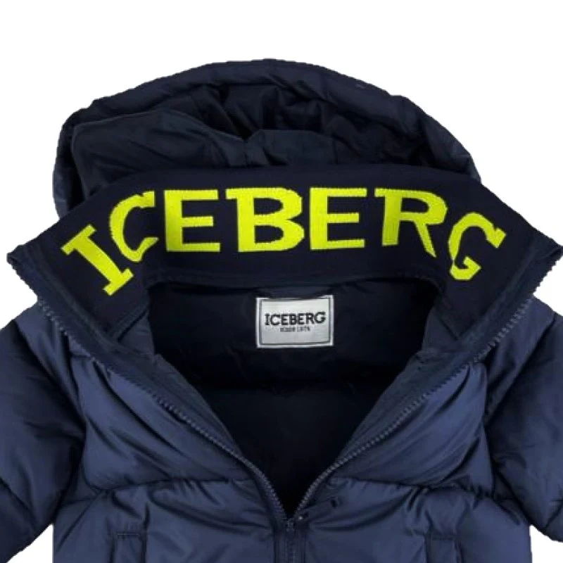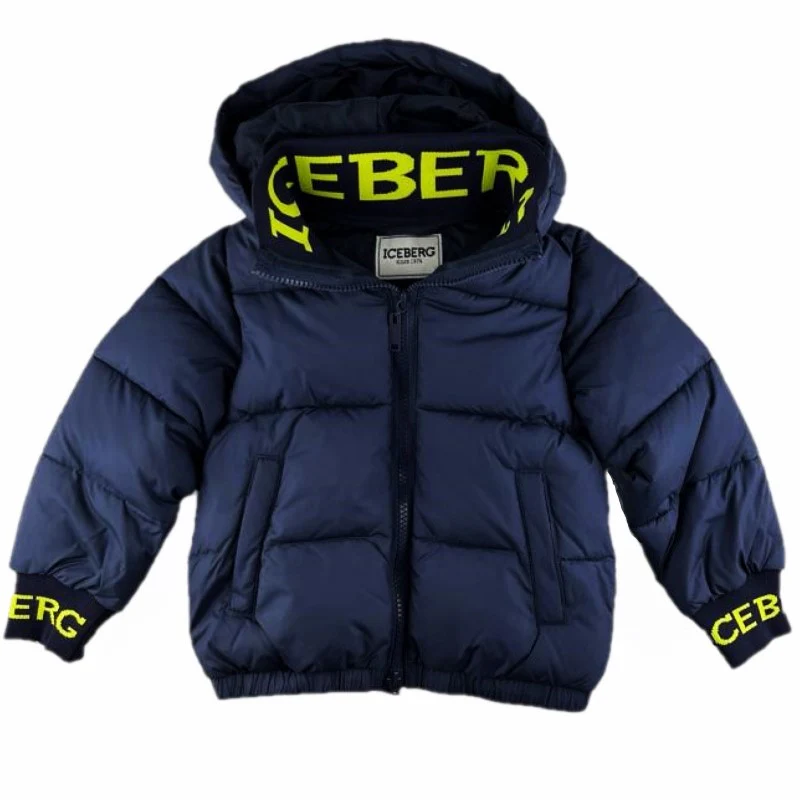 Giubbotto ICEBERG in tessuto modello imbottito modello con cappuccio chiusura zip tasche laterali colletto e polsini logati in tessuto elastico .