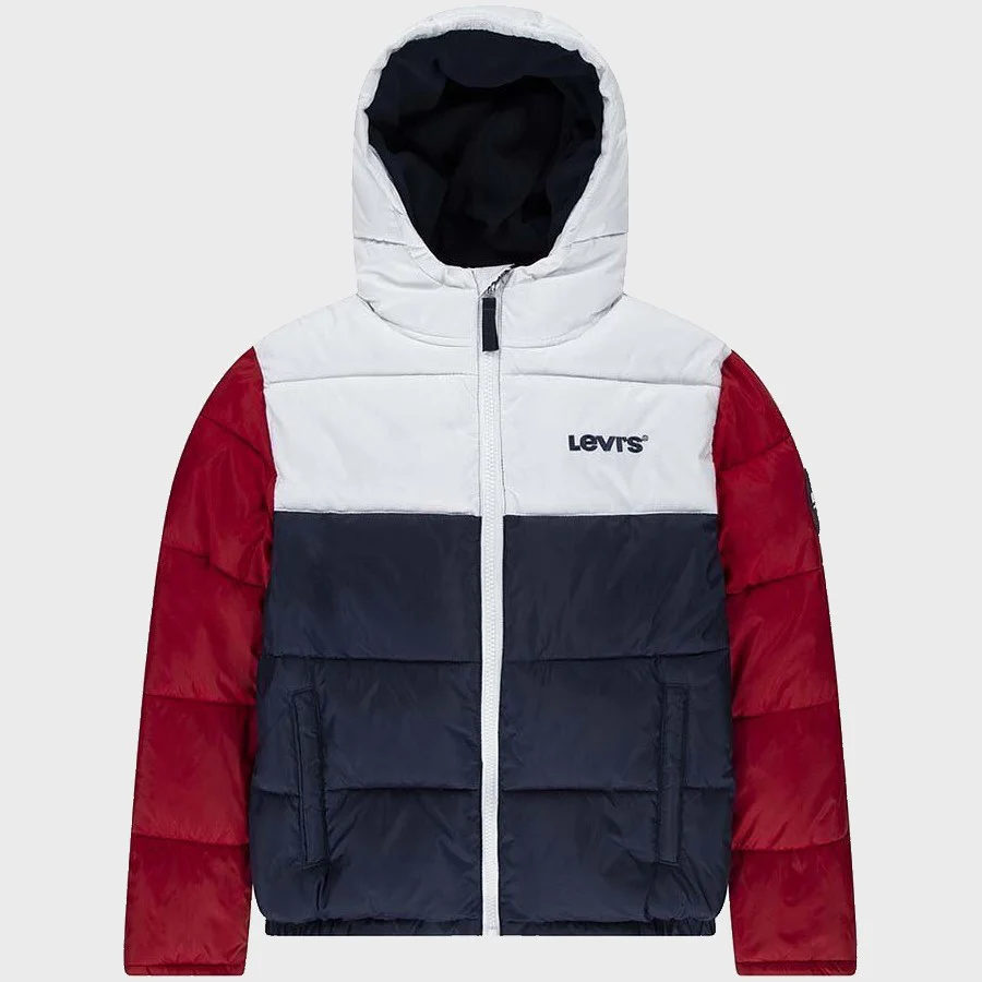 Giubbotto LEVI’S multicolor imbottito linea water resistent con cappuccio ,chiusura zip , logo ricamato sia frontale che sul retro , tasche laterali ,polsino con inserto elastico.