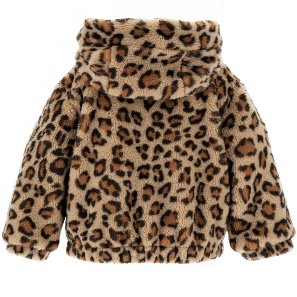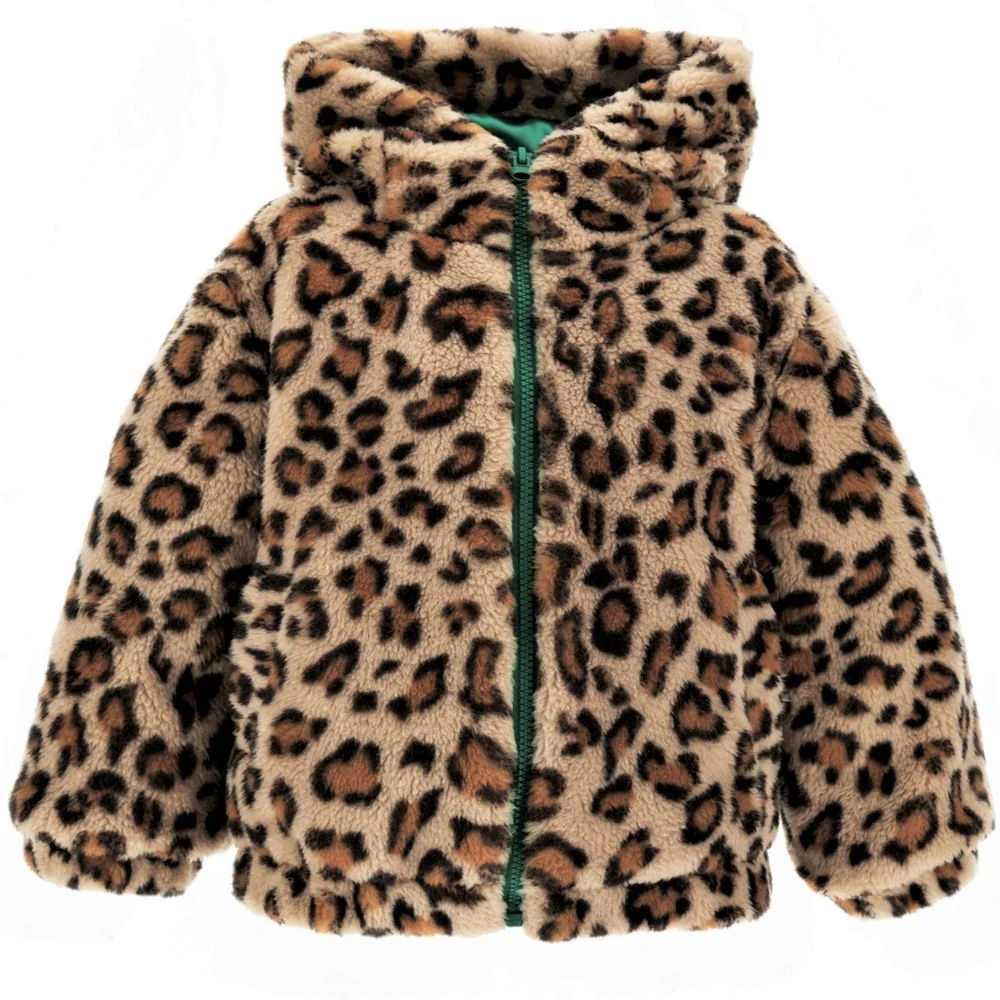 Giubbotto MONNALISA modello bomber in tessuto peluche maculato con cappuccio chiusura zip tasche laterali polsino e vita elastici.