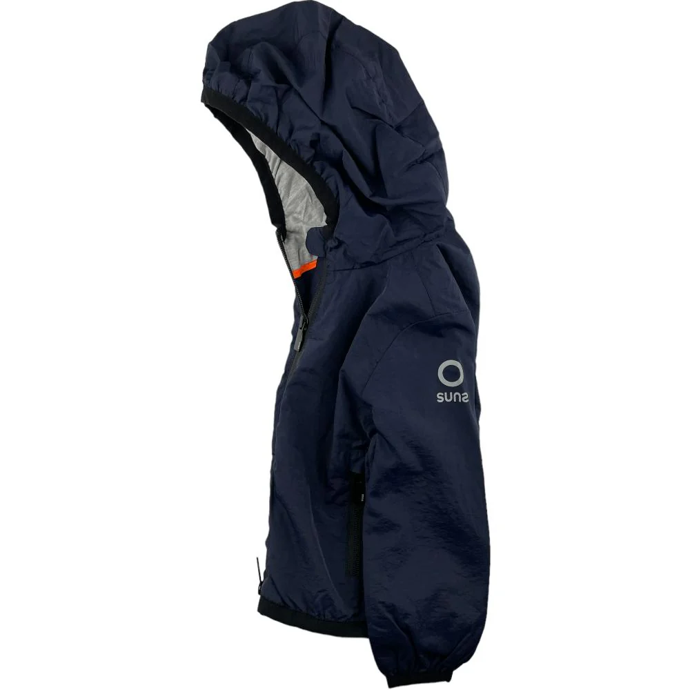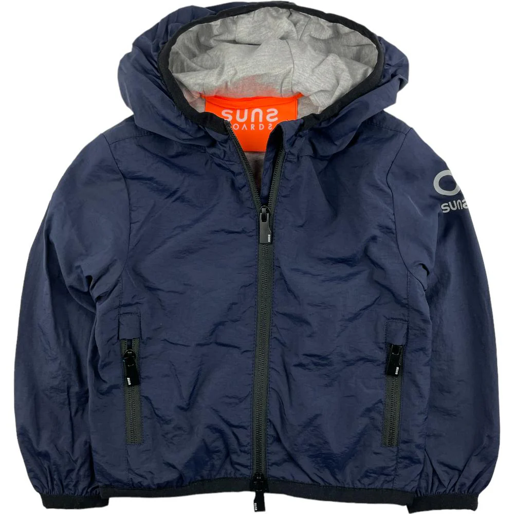 Giubbotto SUNS BOARDS modello primavera estate con cappuccio chiusura zip intera e logo a contrasto.