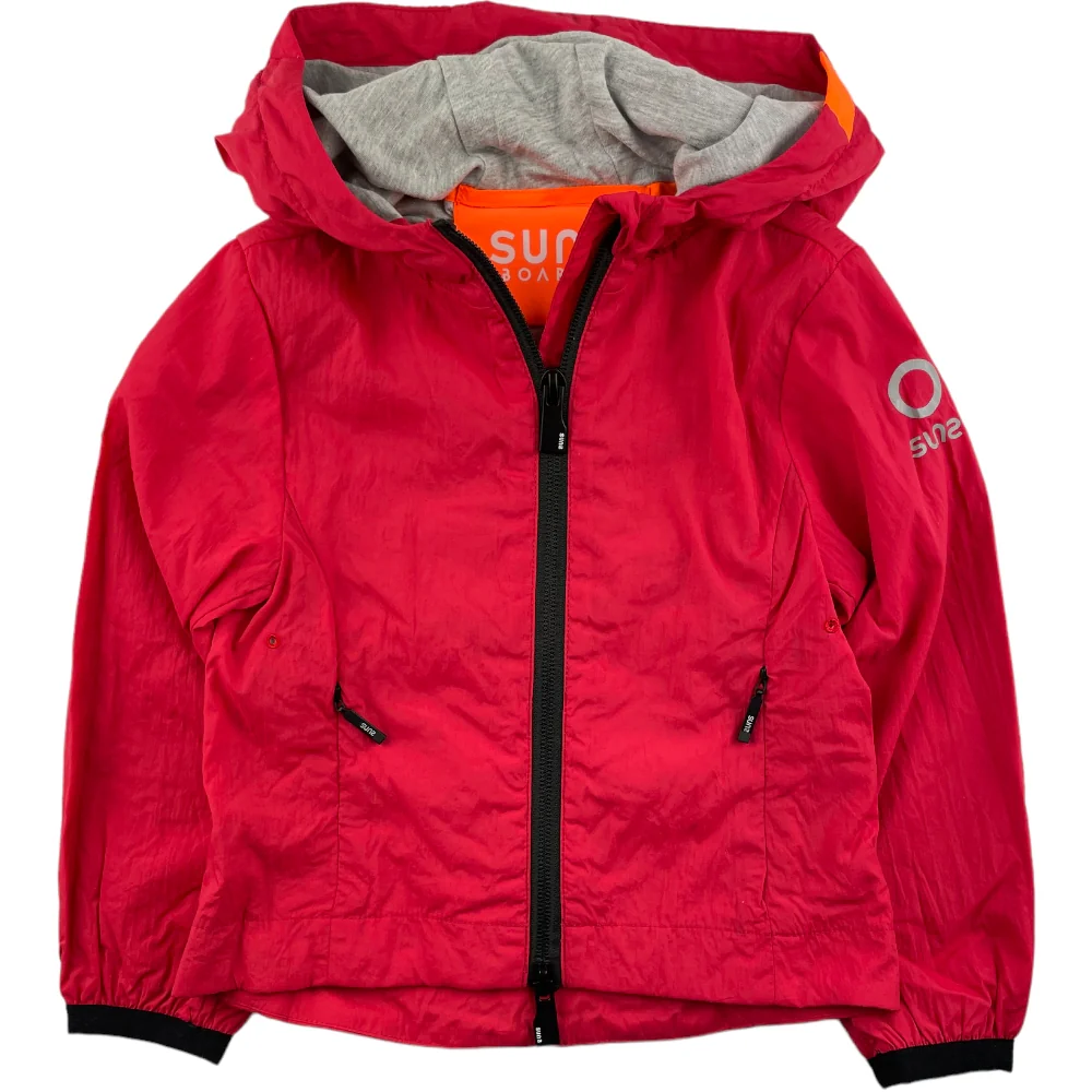 Giubbotto SUNS BOARDS modello primavera estate con cappuccio chiusura zip intera e logo a contrasto.